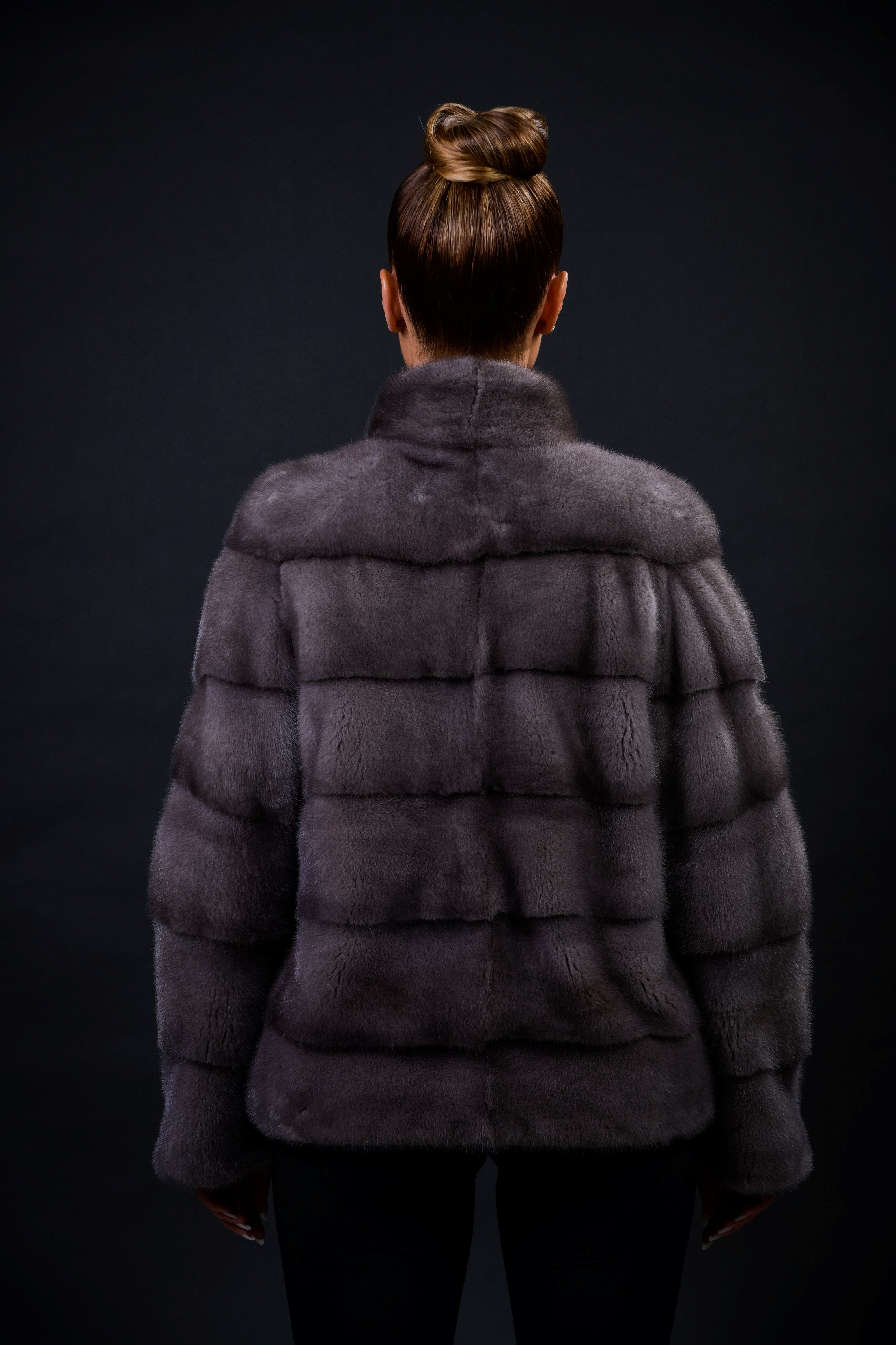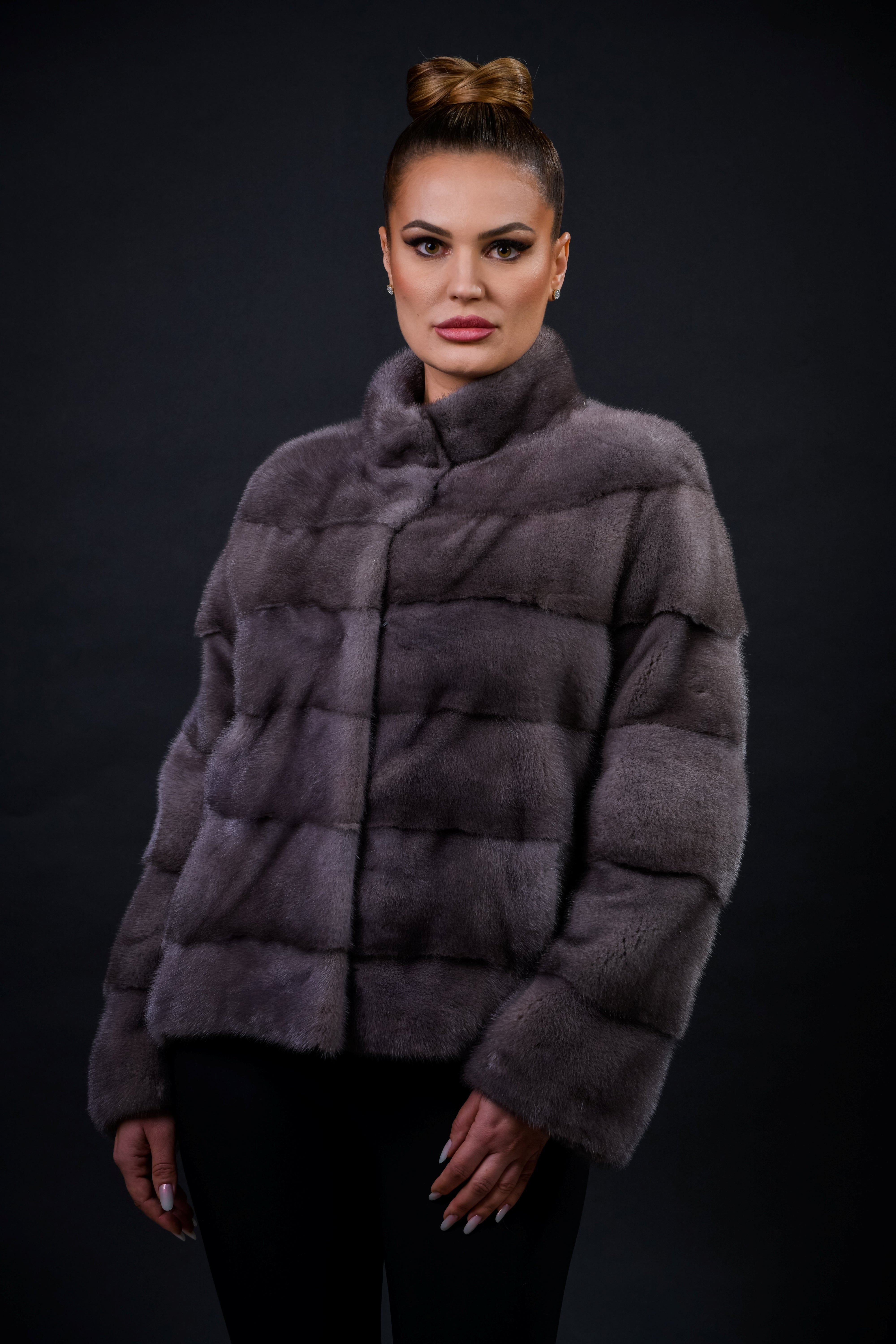 Eleganță pură și rafinament atemporal definesc această blană naturală de vizon în nuanța distinctivă silver-gray. Realizată din blană fină, cu luciu natural și textură catifelată, piesa se remarcă prin croiul modern și echilibrat, care evidențiază silueta într-un mod discret și feminin.