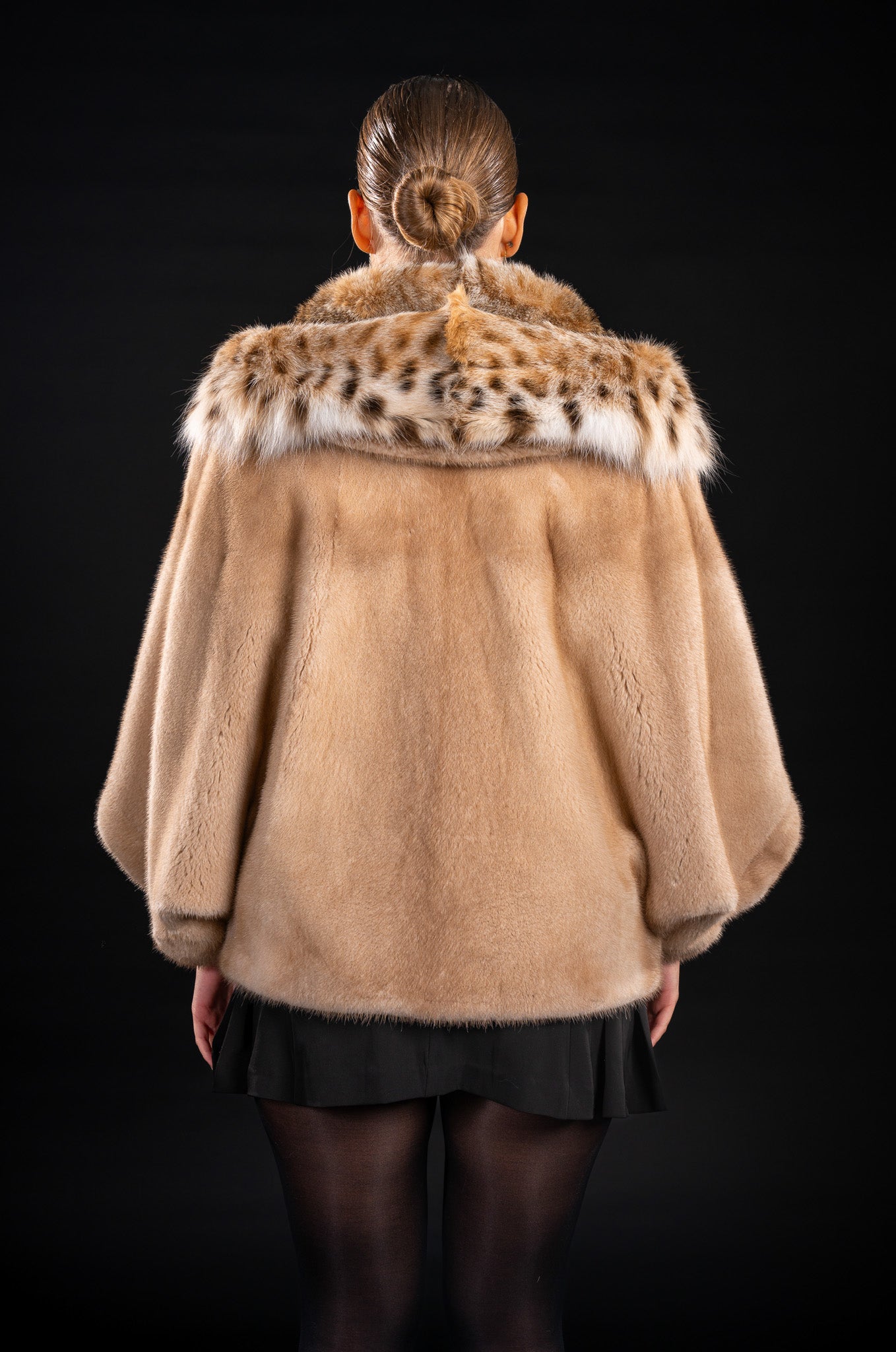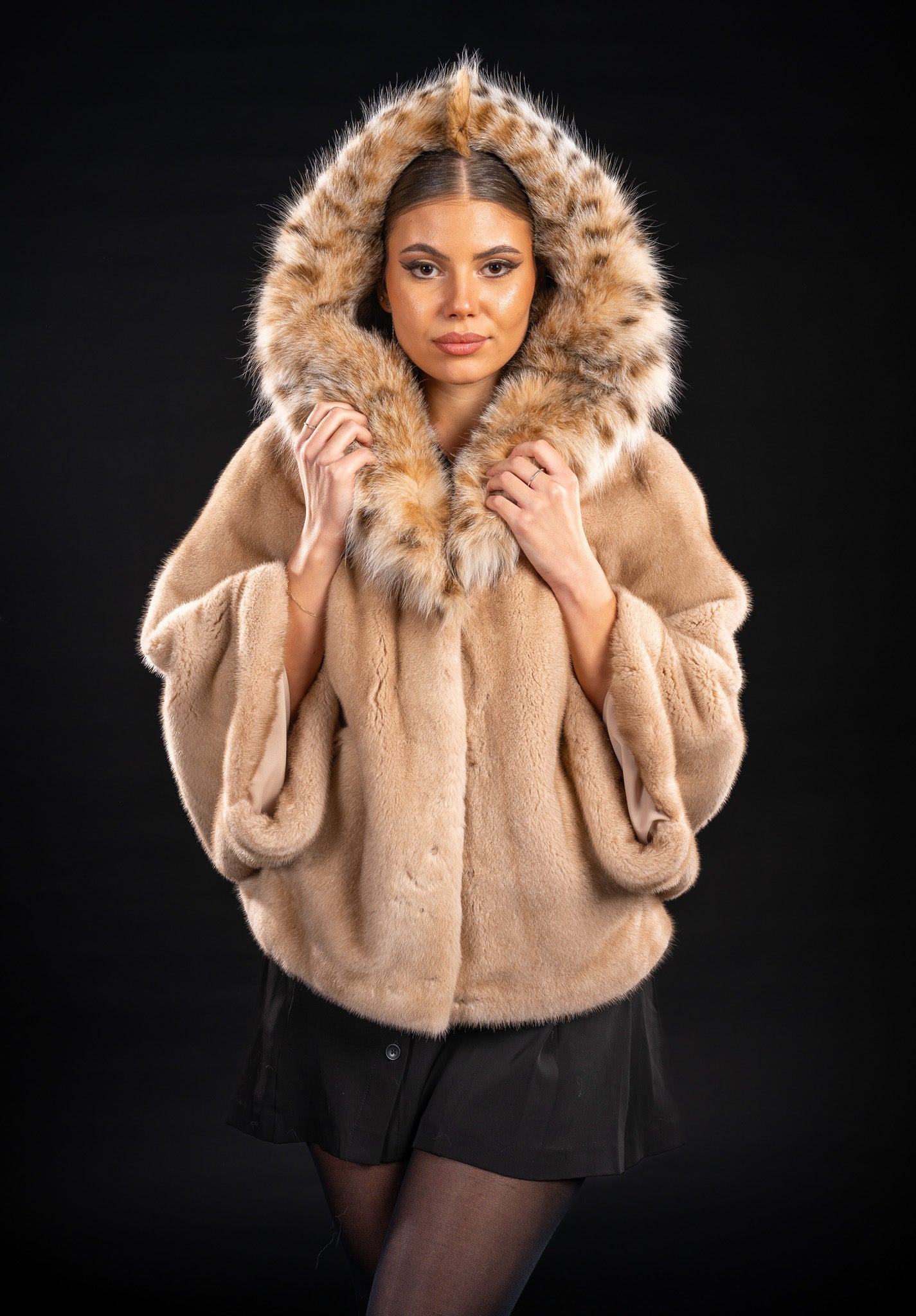 Această capă din vizon în nuanța Light Pastel, accesorizată cu blană naturală de Lynx, este o piesă de colecție — un simbol al eleganței atemporale și al luxului autentic. O alegere ideală pentru femeia care iubește rafinamentul și își dorește o apariție memorabilă, în care fiecare detaliu emană bun-gust și distincție.