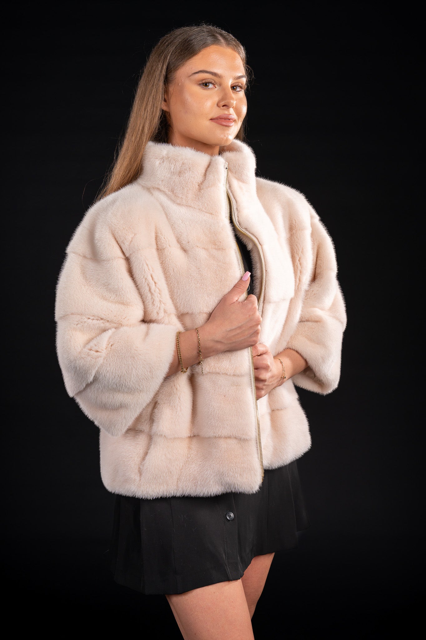 Eleganță și confort într-o singură piesă – această haină din blană naturală de vizon, cu o lungime de 60 cm, combină luxul natural cu un design practic și modern. Inspirată din stilul capeelor, croiala sa mai largă și mânecile trei sferturi oferă lejeritate și libertate de mișcare, făcând-o o alegere ideală pentru zilele mai răcoroase.