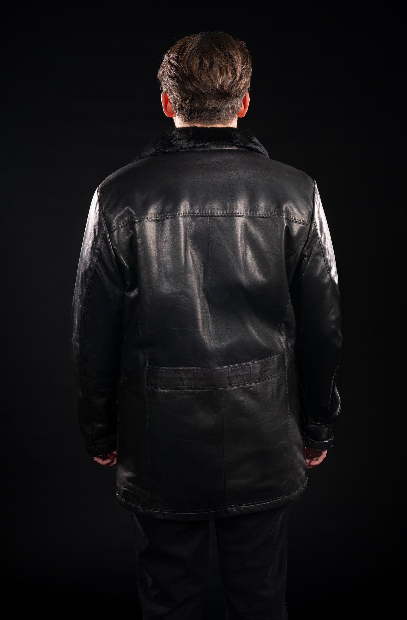 Un exemplu de eleganță masculină și rafinament clasic, acest cojoc din piele naturală neagră impresionează prin combinația perfectă între stil și funcționalitate. Interiorul este îmblănit cu blană naturală de miel, oferind o căldură excepțională și confort deplin în zilele reci.