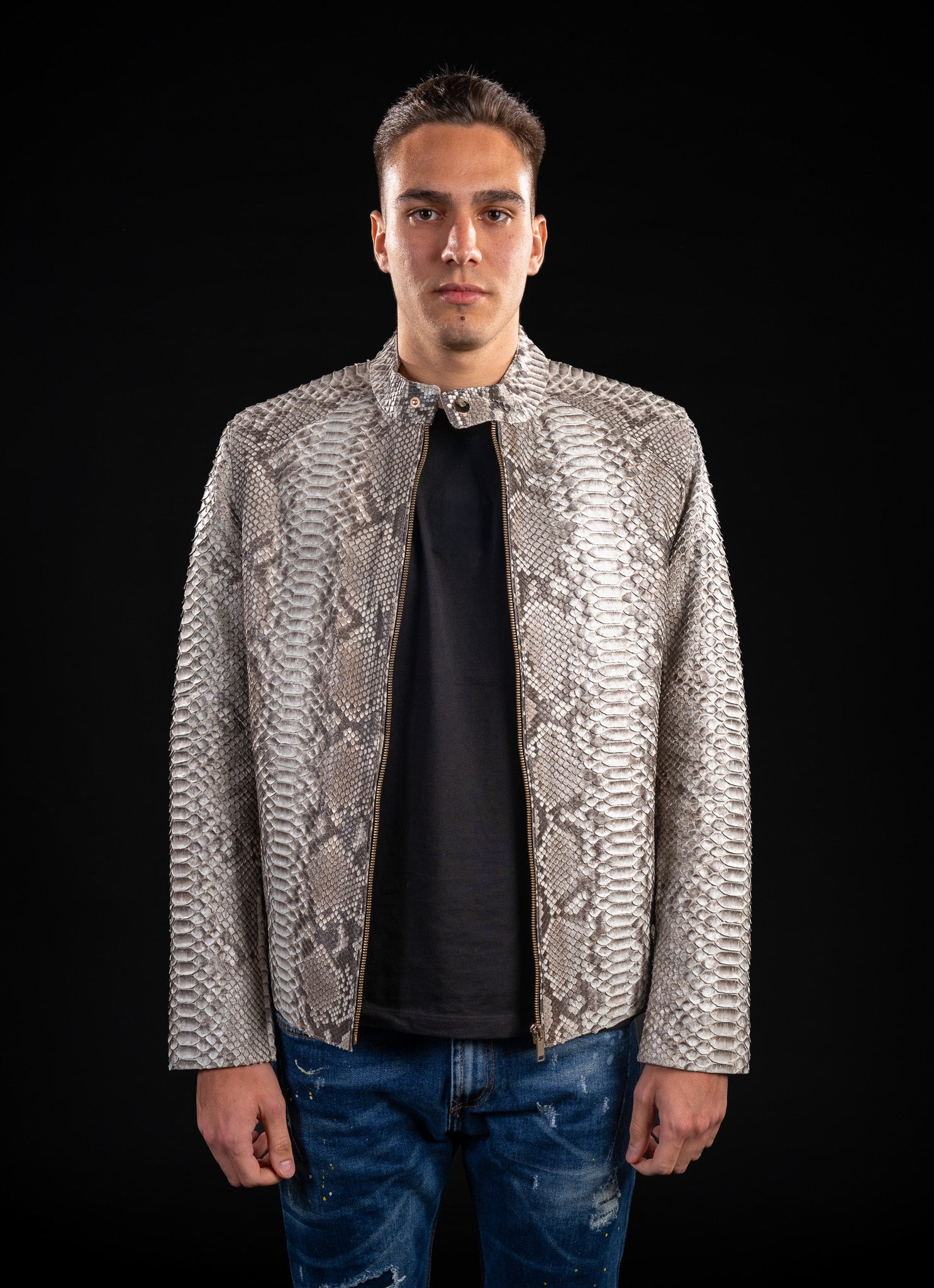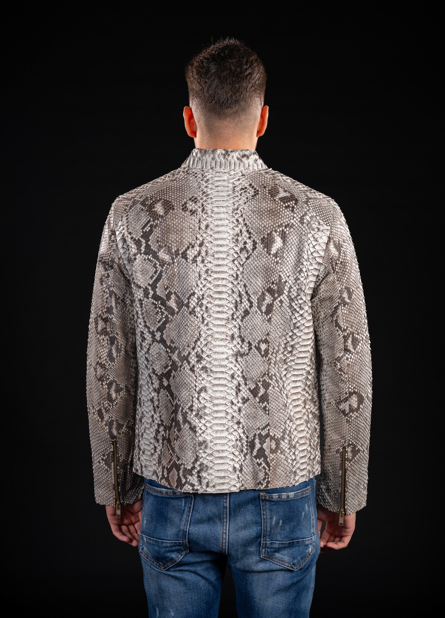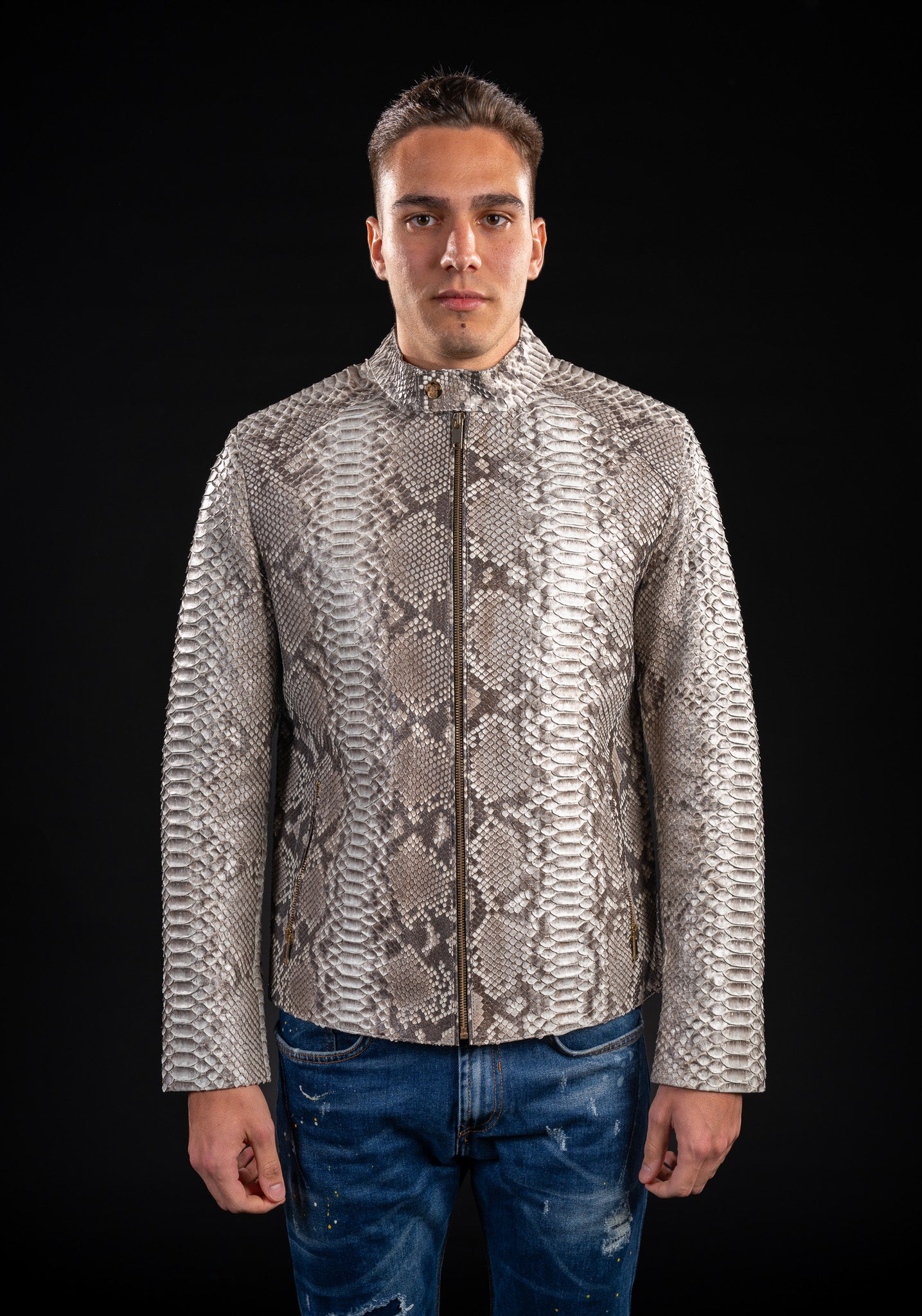 Această haină de bărbați, realizată din piele naturală de piton, reprezintă expresia supremă a rafinamentului și exclusivității. Textura unică a pielii exotice atrage instant privirile, oferind o apariție impunătoare și sofisticată. Fiecare detaliu este lucrat manual, iar desenul natural al solzilor de piton transformă fiecare piesă într-un exemplar unic, cu personalitate proprie.
