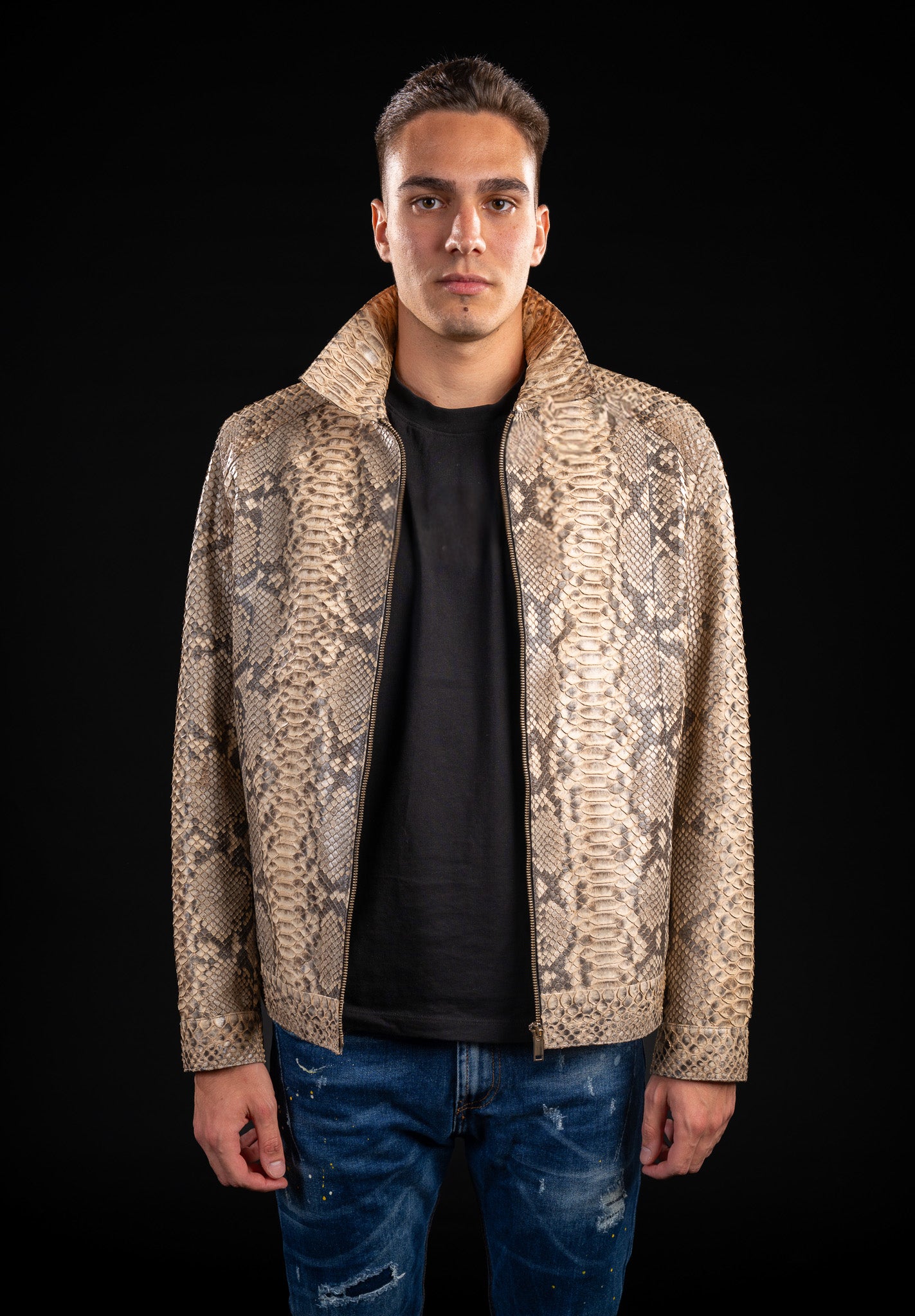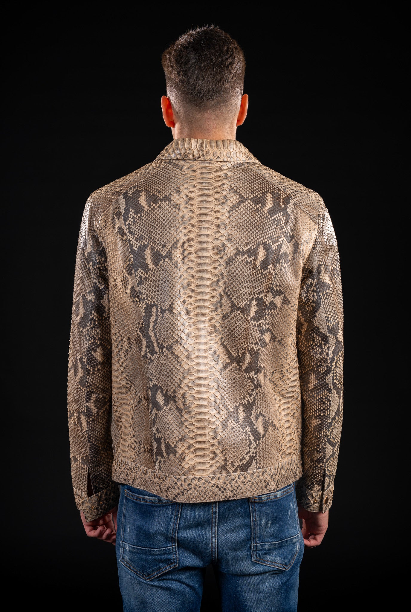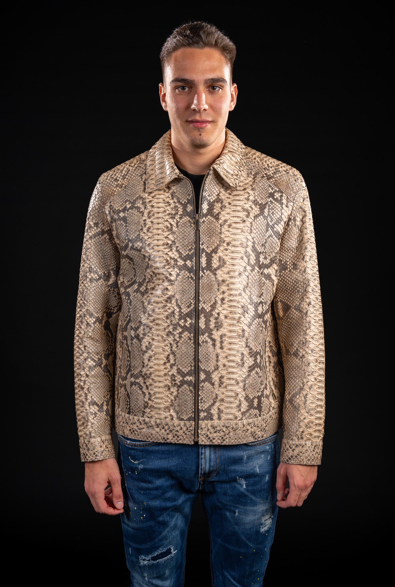 Această haină de bărbați, realizată din piele naturală de piton, reprezintă expresia supremă a rafinamentului și exclusivității. Textura unică a pielii exotice atrage instant privirile, oferind o apariție impunătoare și sofisticată. Fiecare detaliu este lucrat manual, iar desenul natural al solzilor de piton transformă fiecare piesă într-un exemplar unic, cu personalitate proprie.