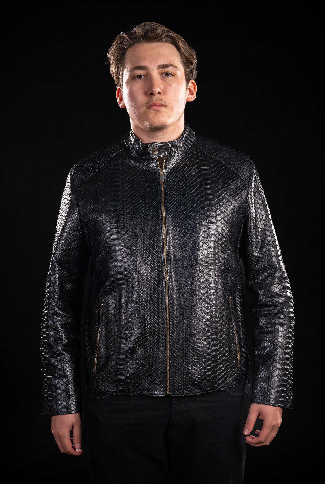 Această haină de bărbați, realizată din piele naturală de piton, reprezintă expresia supremă a rafinamentului și exclusivității. Textura unică a pielii exotice atrage instant privirile, oferind o apariție impunătoare și sofisticată. Fiecare detaliu este lucrat manual, iar desenul natural al solzilor de piton transformă fiecare piesă într-un exemplar unic, cu personalitate proprie.