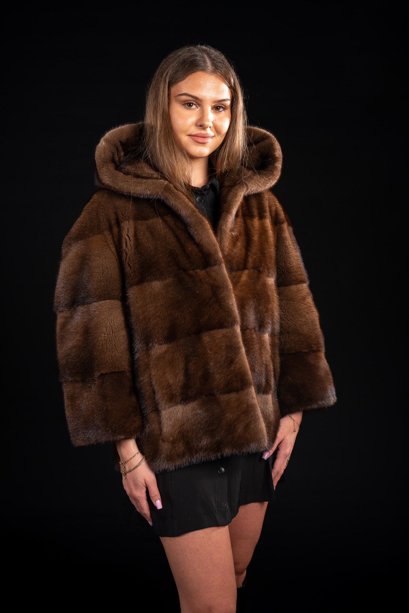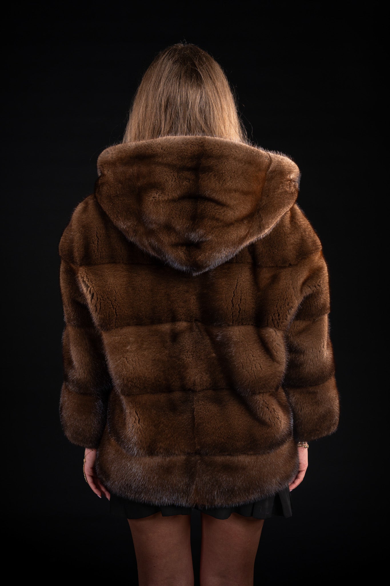 O piesă rafinată și versatilă, realizată din blană naturală de vizon în nuanță delicată Demi-Buff, care conferă eleganță și prospețime garderobei. Croiul lejer oferă libertate de mișcare și un look relaxat, păstrând totodată rafinamentul vizonului.