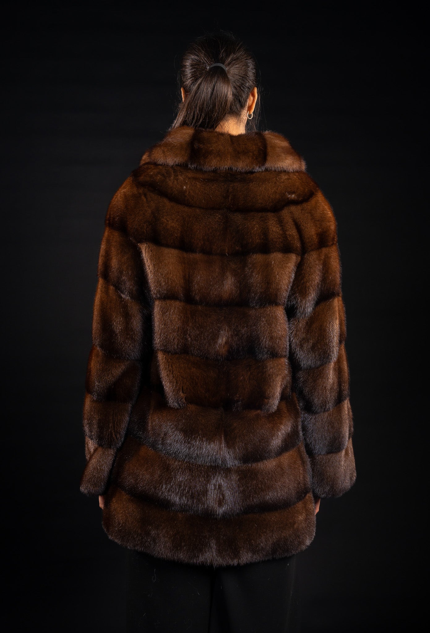 Eleganță și rafinament într-un singur articol. Această haină din blană naturală de vizon, nuanță Demi Buff, prezintă un croi cambrat ce evidențiază silueta, oferind un aspect sofisticat și modern. Mâneci lungi și guler înalt pentru protecție optimă împotriva frigului, combinând confortul cu stilul.