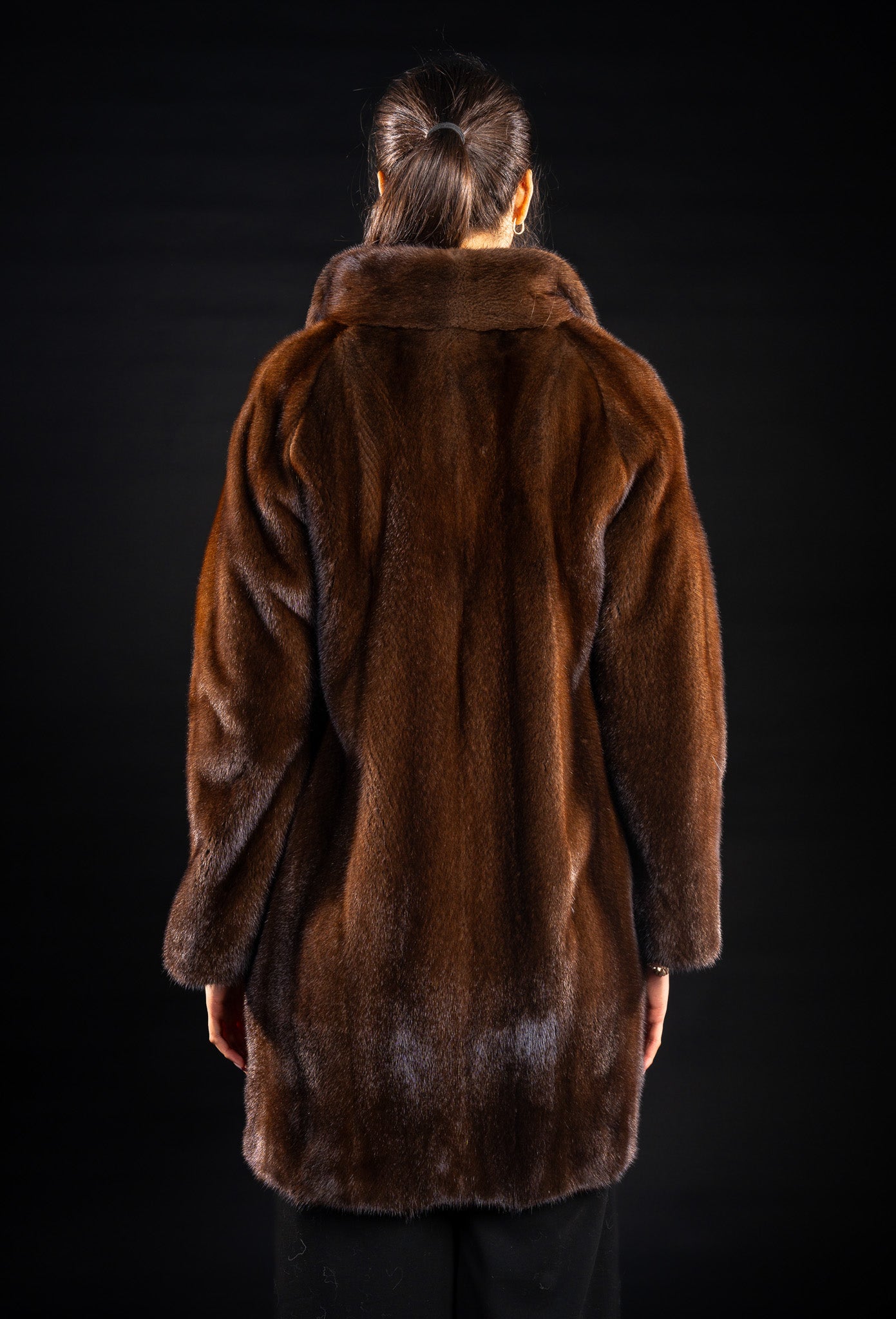 Textura fină și densitatea naturală a blănii asigură confort și căldură, în timp ce nuanța Demi-Buff adaugă un aer sofisticat și ușor de asortat. Această haină este ideală pentru femeia care apreciază stilul elegant, piesele versatile și eleganța subtilă si are o lungime de 90 cm.
