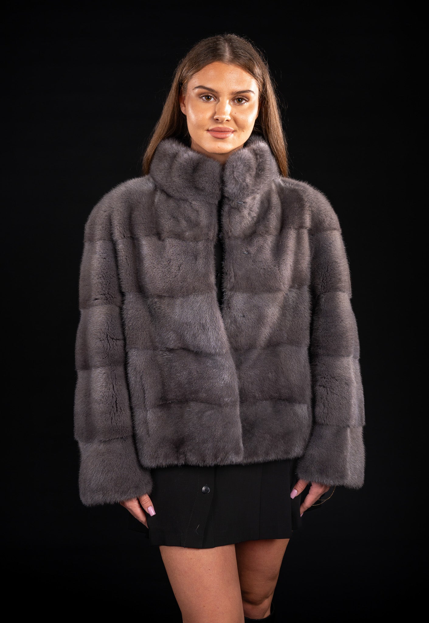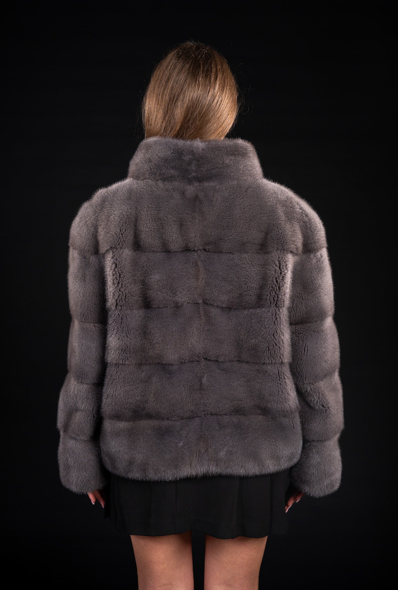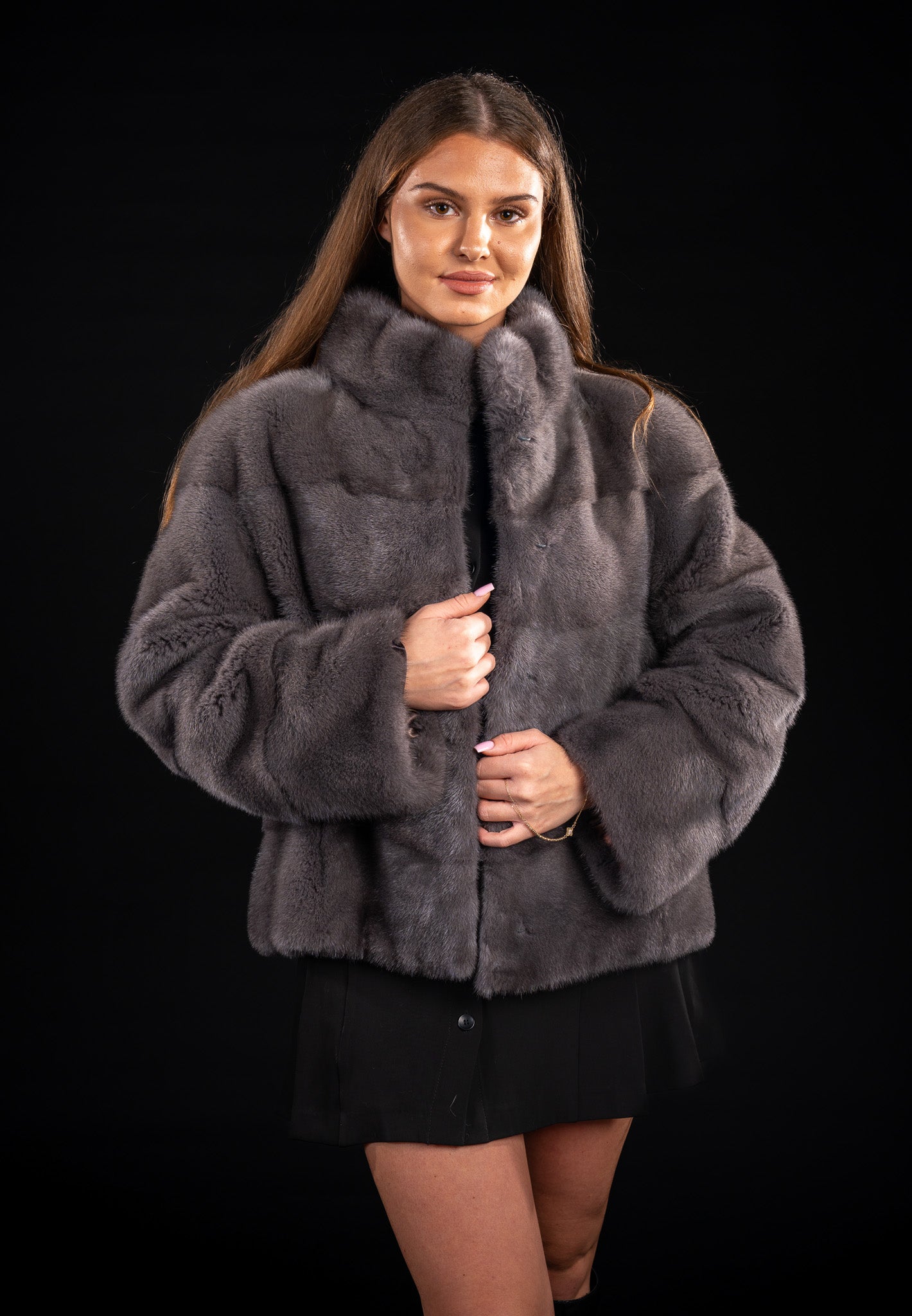 Descoperă rafinamentul absolut cu această haină din blană naturală de vizon, într-o nuanță elegantă de gri antracit. Fiecare detaliu al acestei piese a fost gândit pentru a oferi nu doar căldură, ci și un look sofisticat și contemporan. Textura fină și catifelată a blănii naturale emană lux și rafinament, în timp ce densitatea firelor asigură un confort termic excepțional, chiar și în cele mai reci zile.