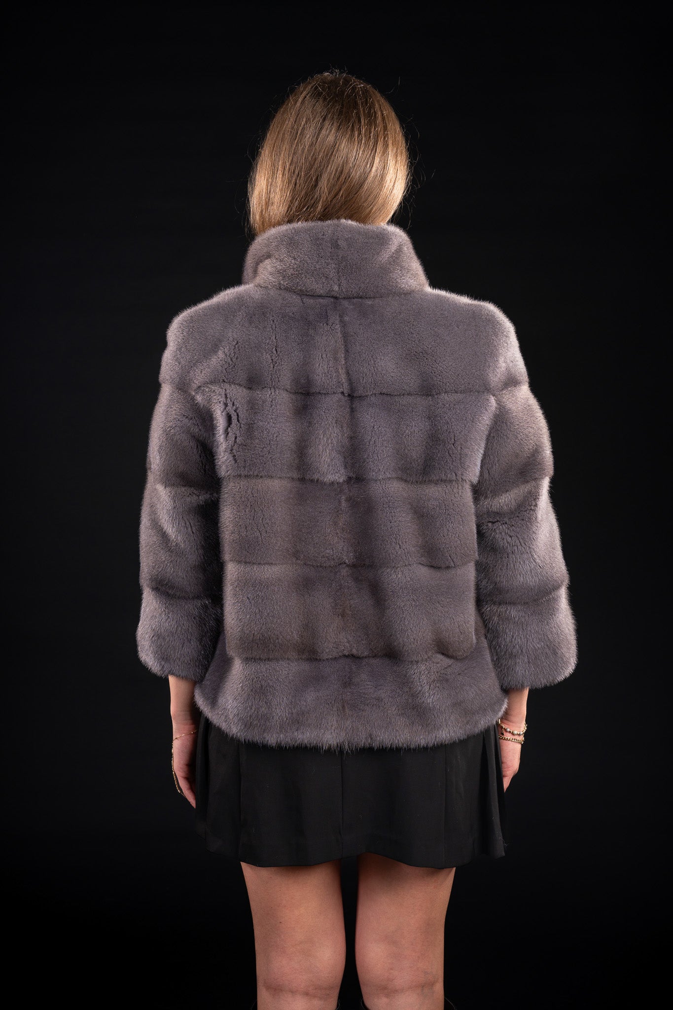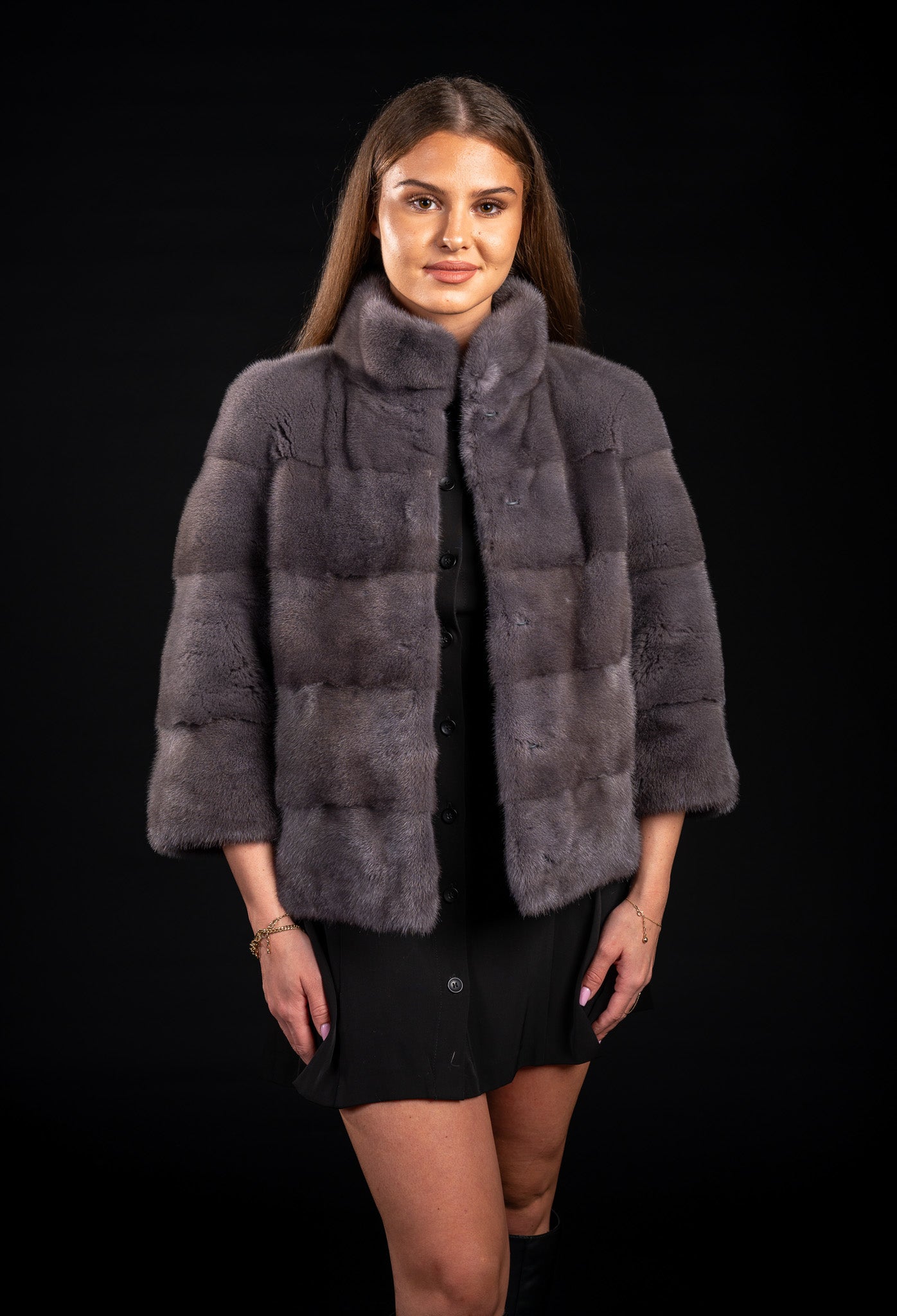 Descoperă rafinamentul absolut cu această haină din blană naturală de vizon, într-o nuanță elegantă de gri antracit. Fiecare detaliu al acestei piese a fost gândit pentru a oferi nu doar căldură, ci și un look sofisticat și contemporan. Textura fină și catifelată a blănii naturale emană lux și rafinament, în timp ce densitatea firelor asigură un confort termic excepțional, chiar și în cele mai reci zile.