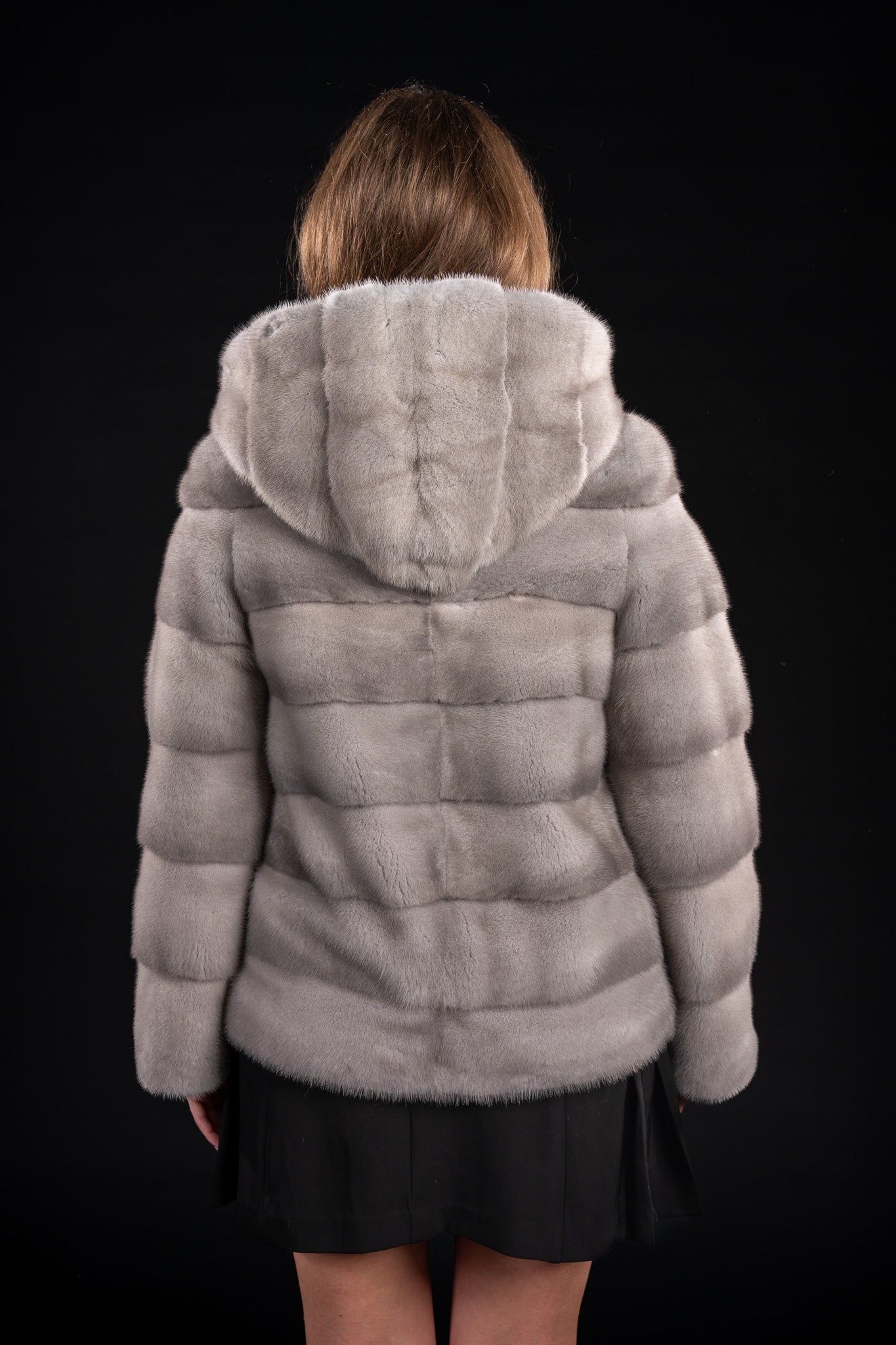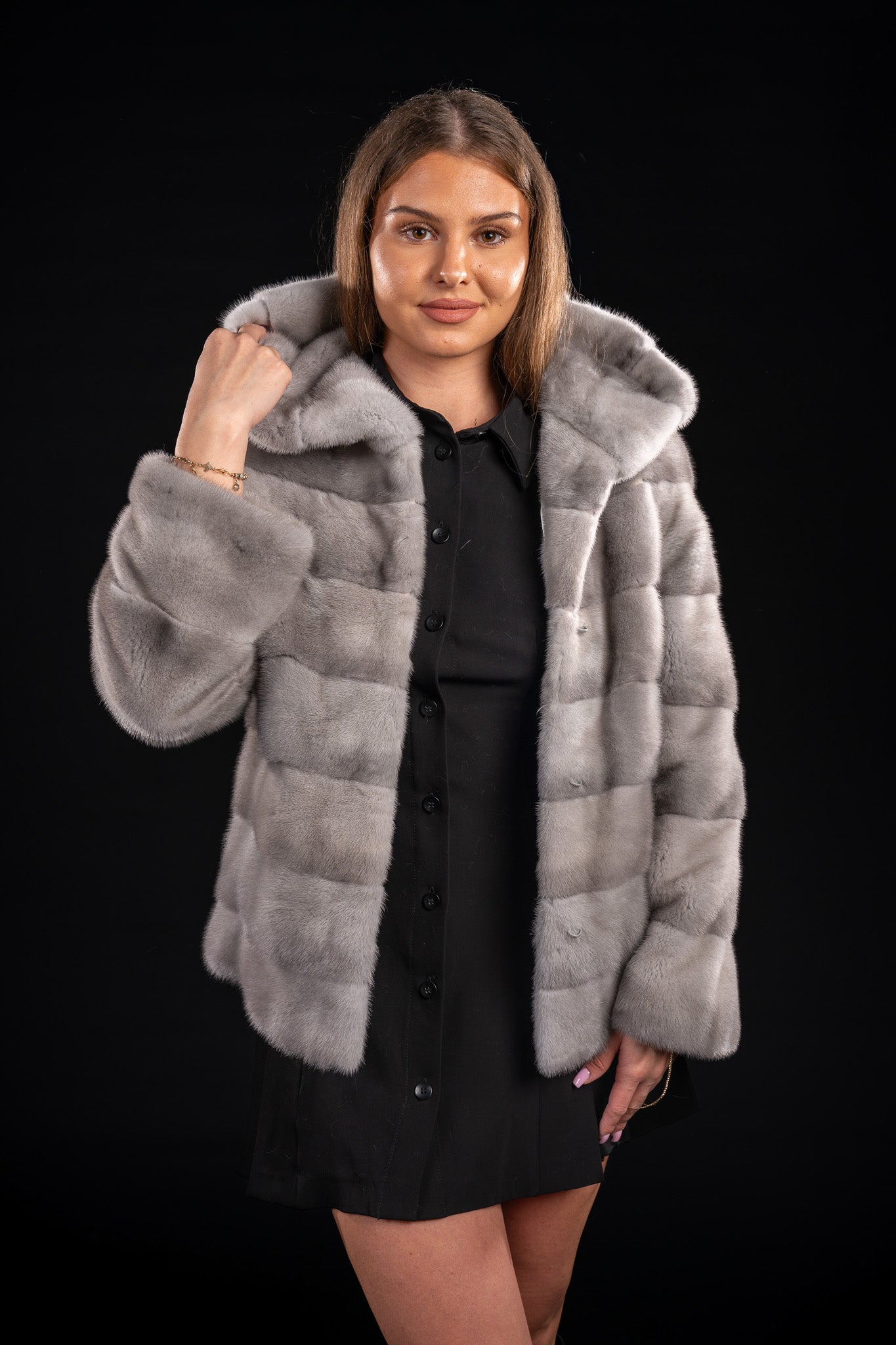 Rafinată și atemporală, această haină din blană naturală de vizon impresionează prin nuanța sa delicată gri sapphire, cu reflexe fine de argint și albastru, ce emană eleganță pură. Textura moale și luciul natural al blănii evidențiază calitatea superioară a materialului, oferind o senzație de lux la fiecare purtare.