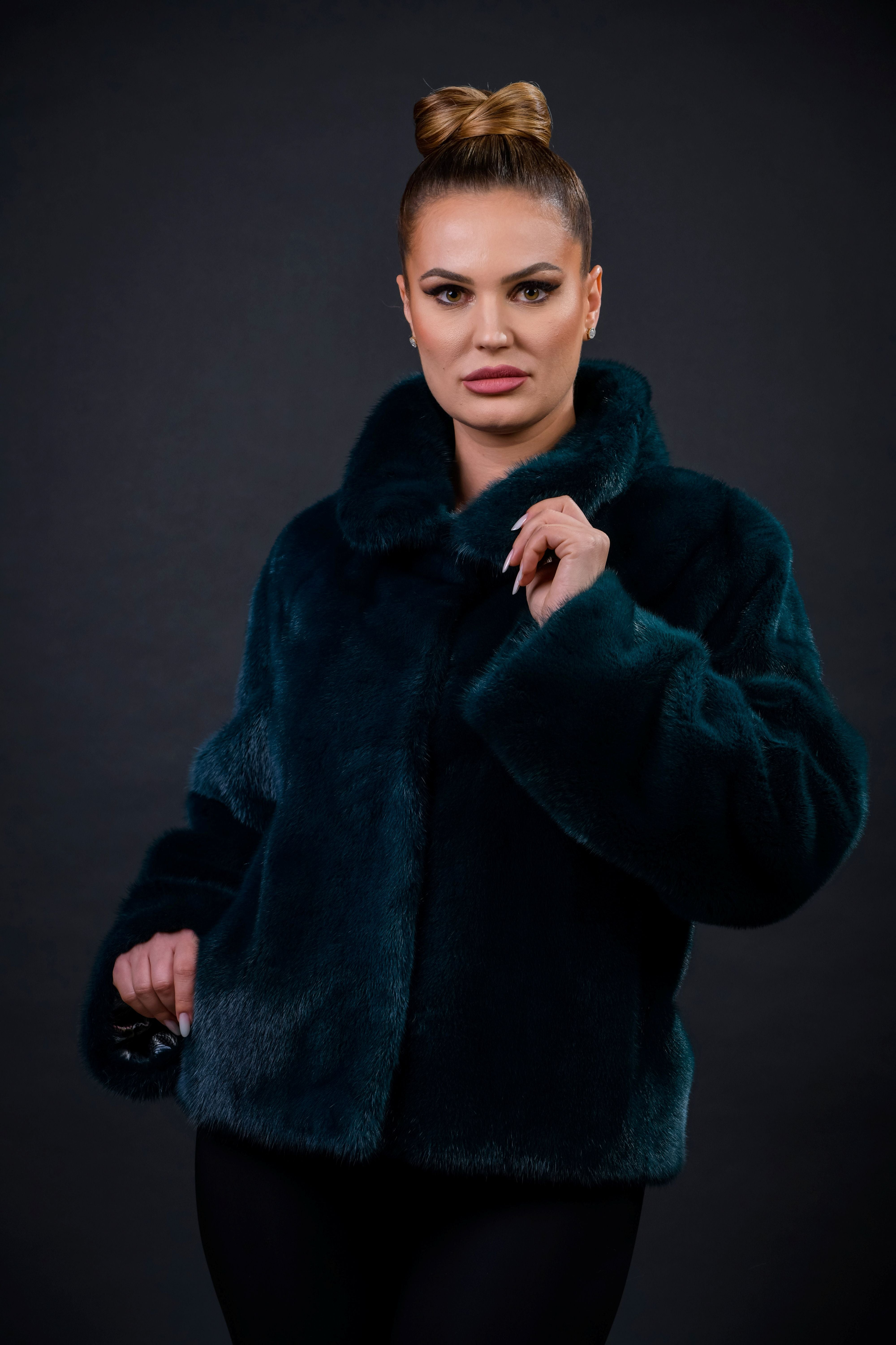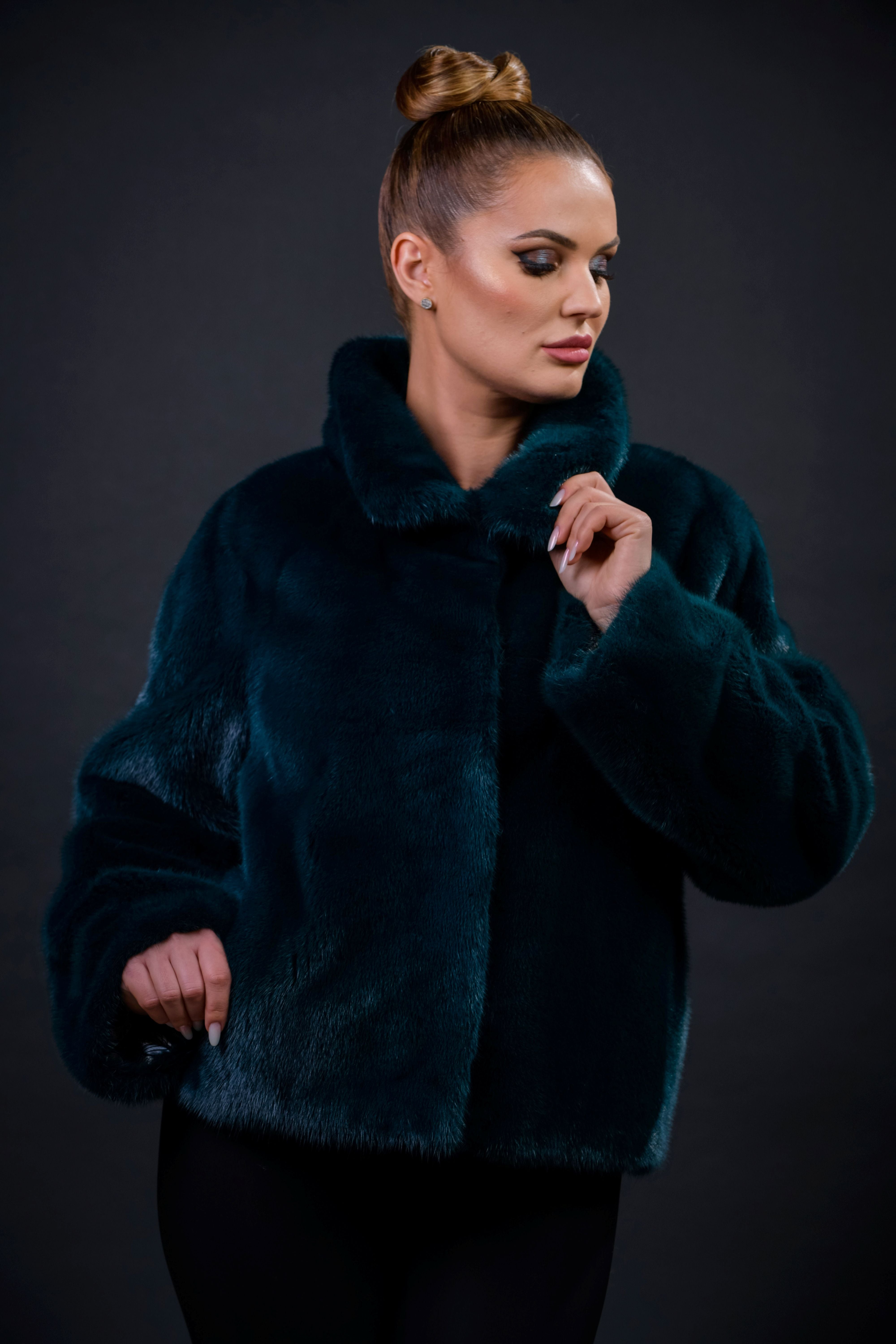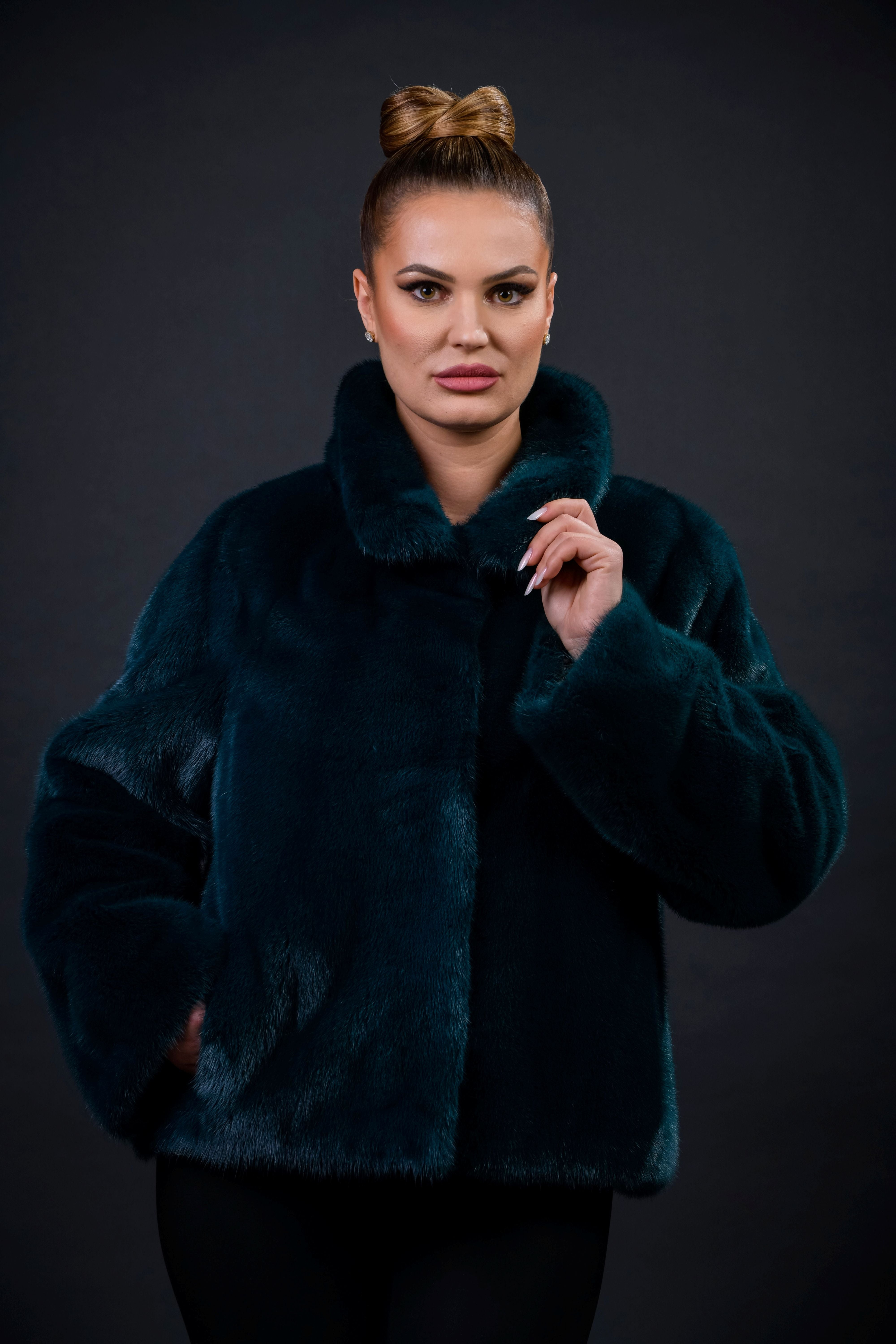 O piesă excepțională, realizată din blană naturală de vizon în nuanță rară și sofisticată smarald, care adaugă un aer distinct și elegant garderobei. Croiul ușor cambrat conturează frumos silueta, evidențiind feminitatea, iar mâneca lungă oferă un aspect clasic și rafinat.