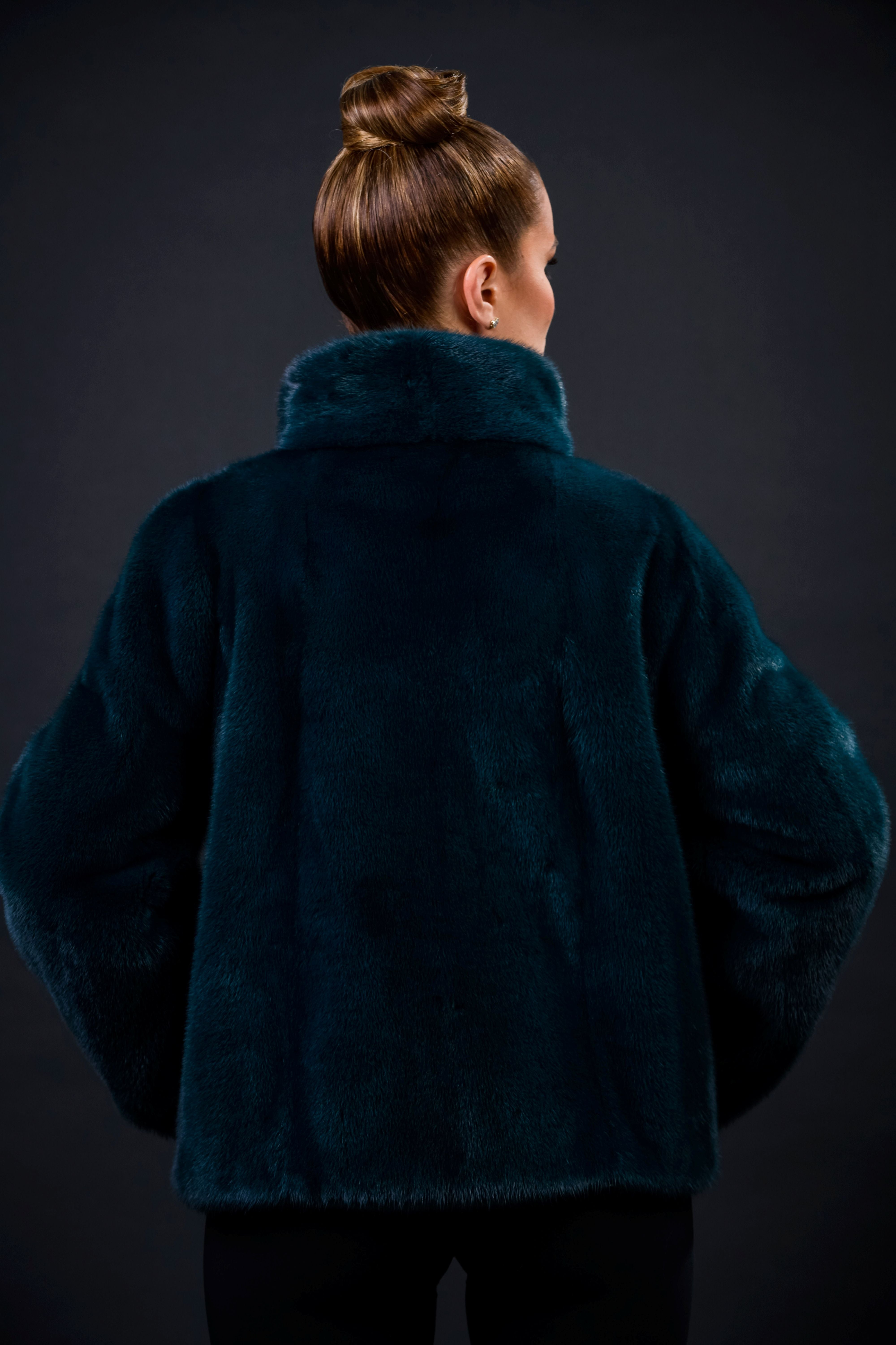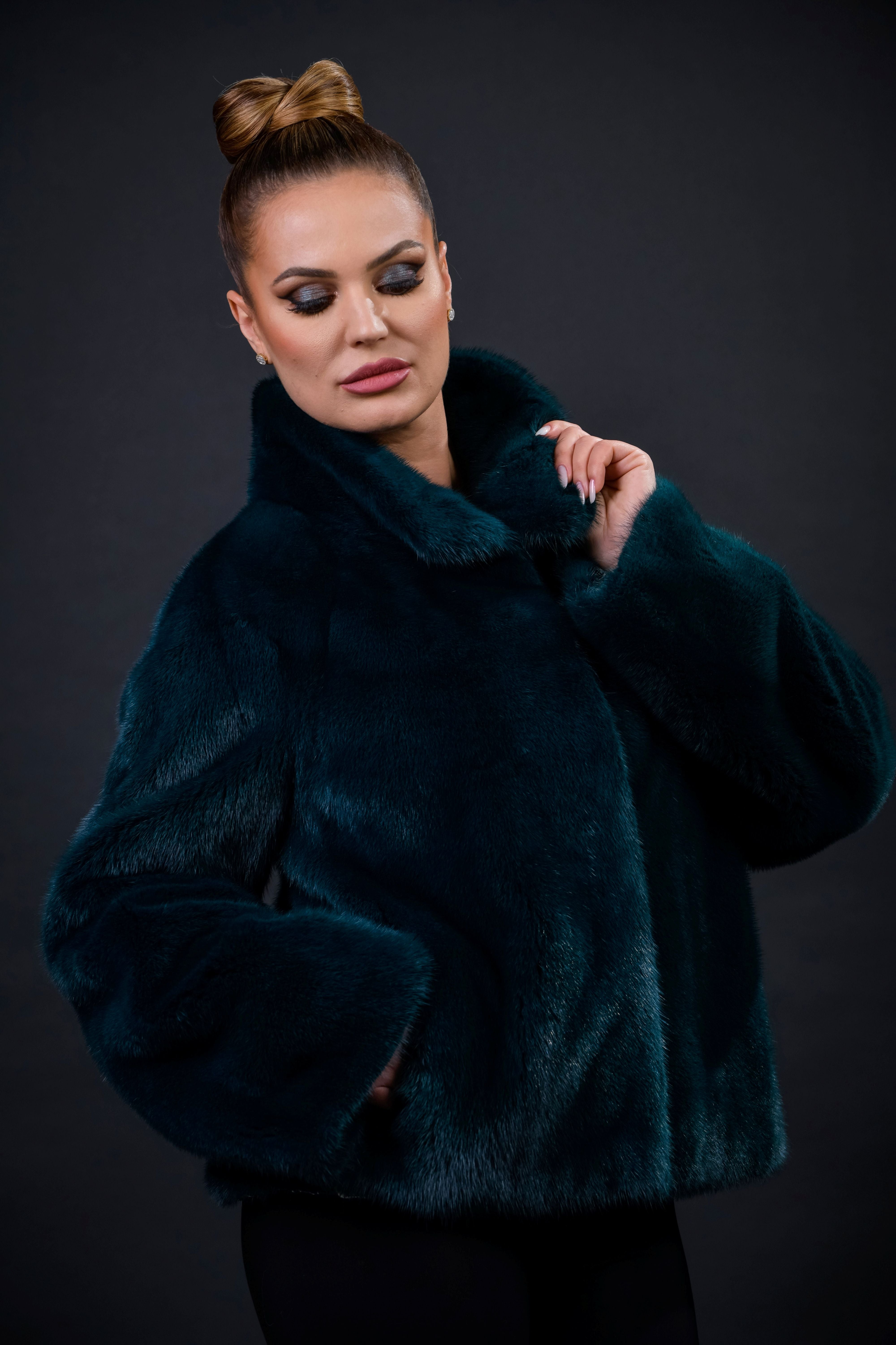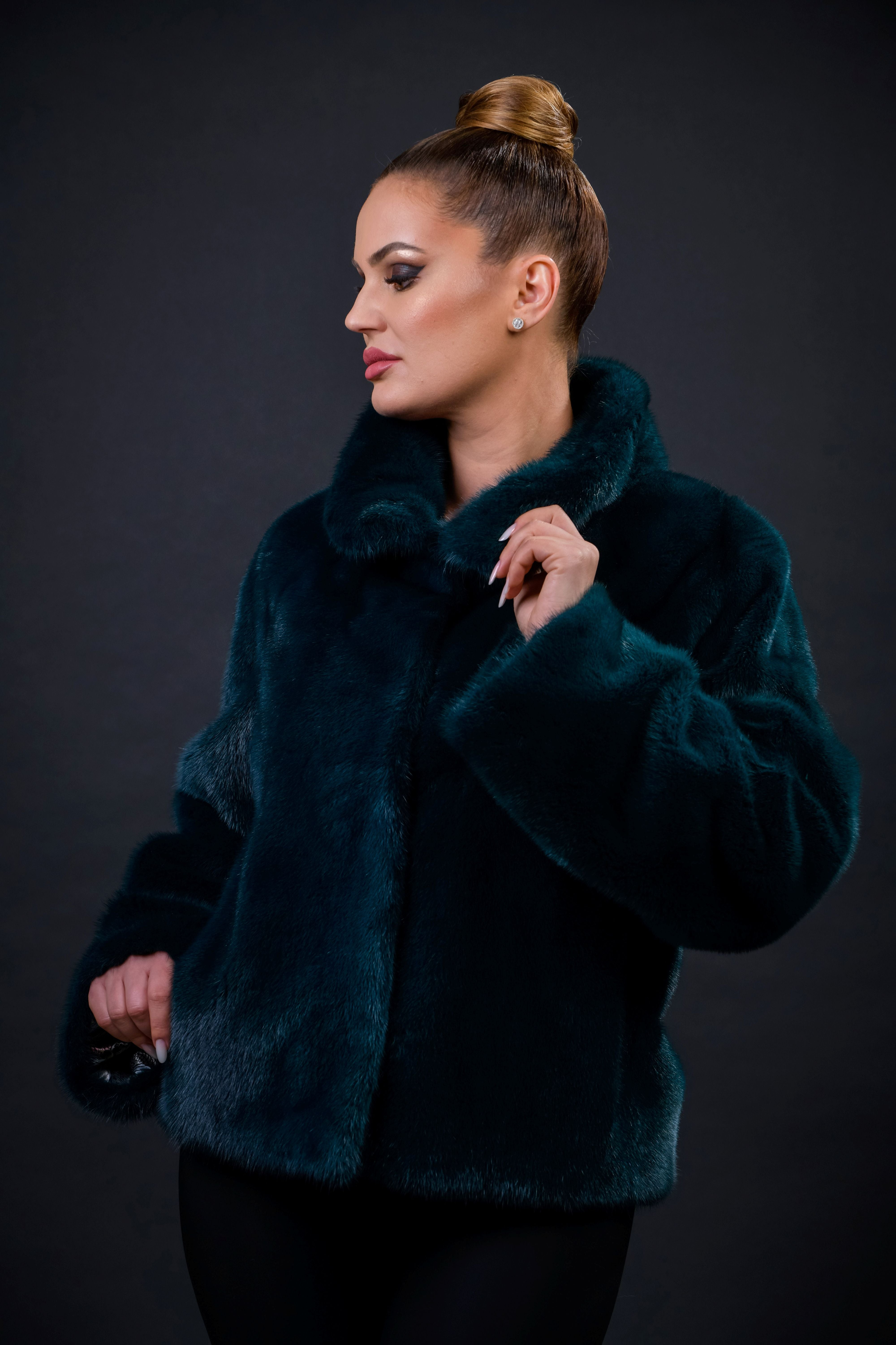 O piesă excepțională, realizată din blană naturală de vizon în nuanță rară și sofisticată smarald, care adaugă un aer distinct și elegant garderobei. Croiul ușor cambrat conturează frumos silueta, evidențiind feminitatea, iar mâneca lungă oferă un aspect clasic și rafinat.
