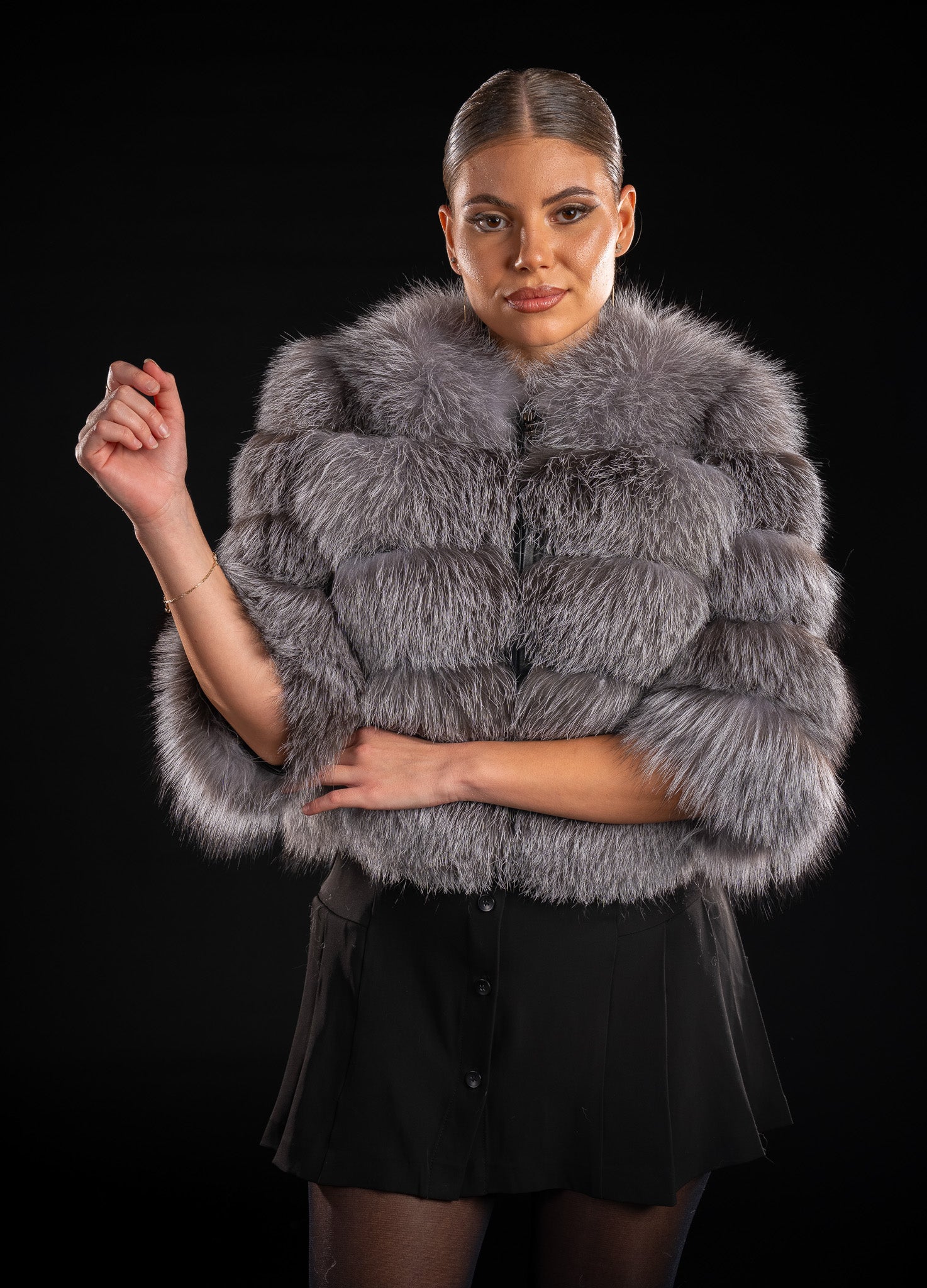 HAINA DIN BLANA NATURALA DE VULPE ARGINTIE CU MANECA 3/4, FROST 012