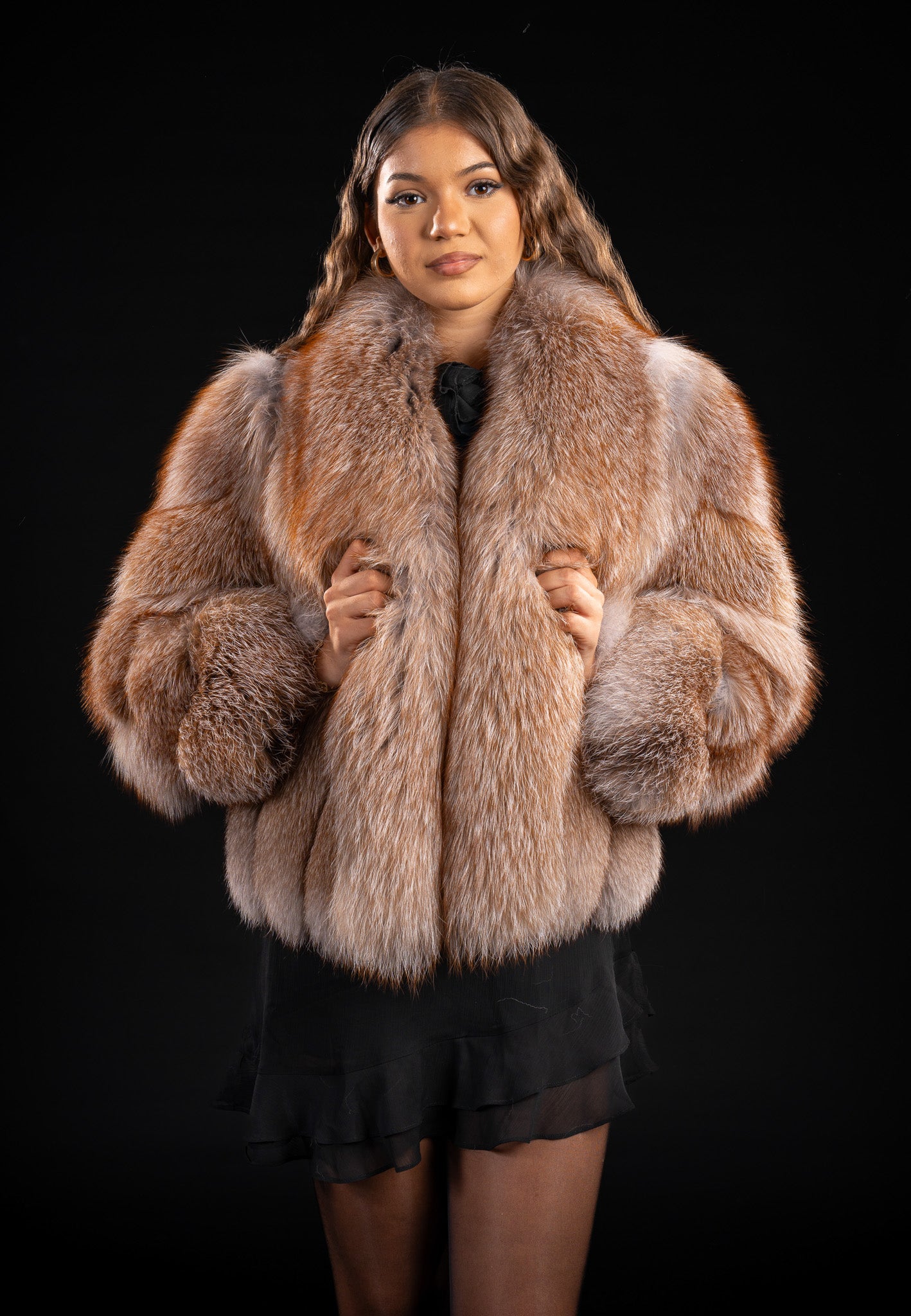 Această jachetă rafinată din vulpe canadiana gold impresionează prin eleganța clasică și textura luxoasă a blănii naturale. Croiala sa liniară, verticală, alungește silueta și conferă o notă sofisticată, perfect echilibrată între stil modern și rafinament atemporal.