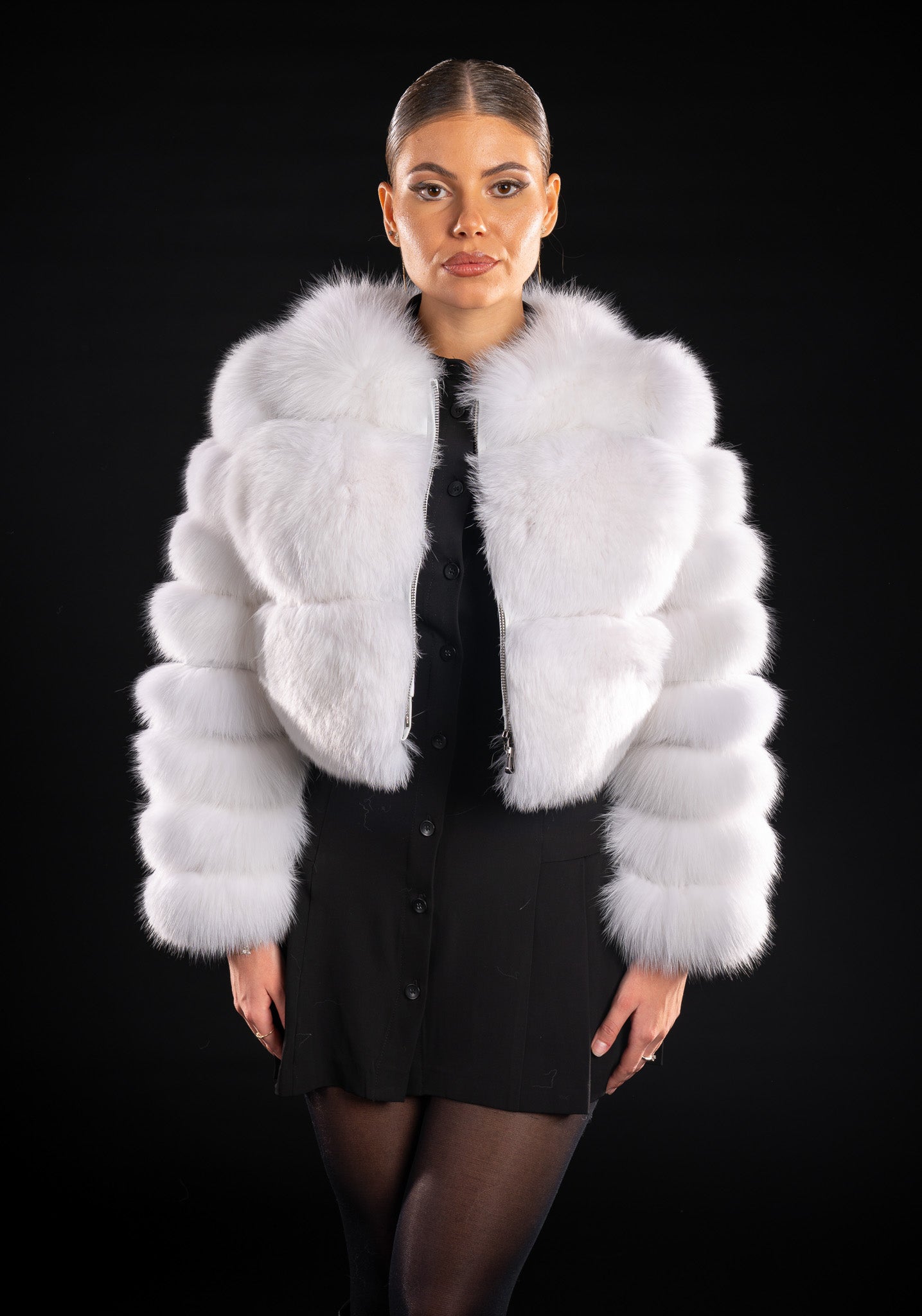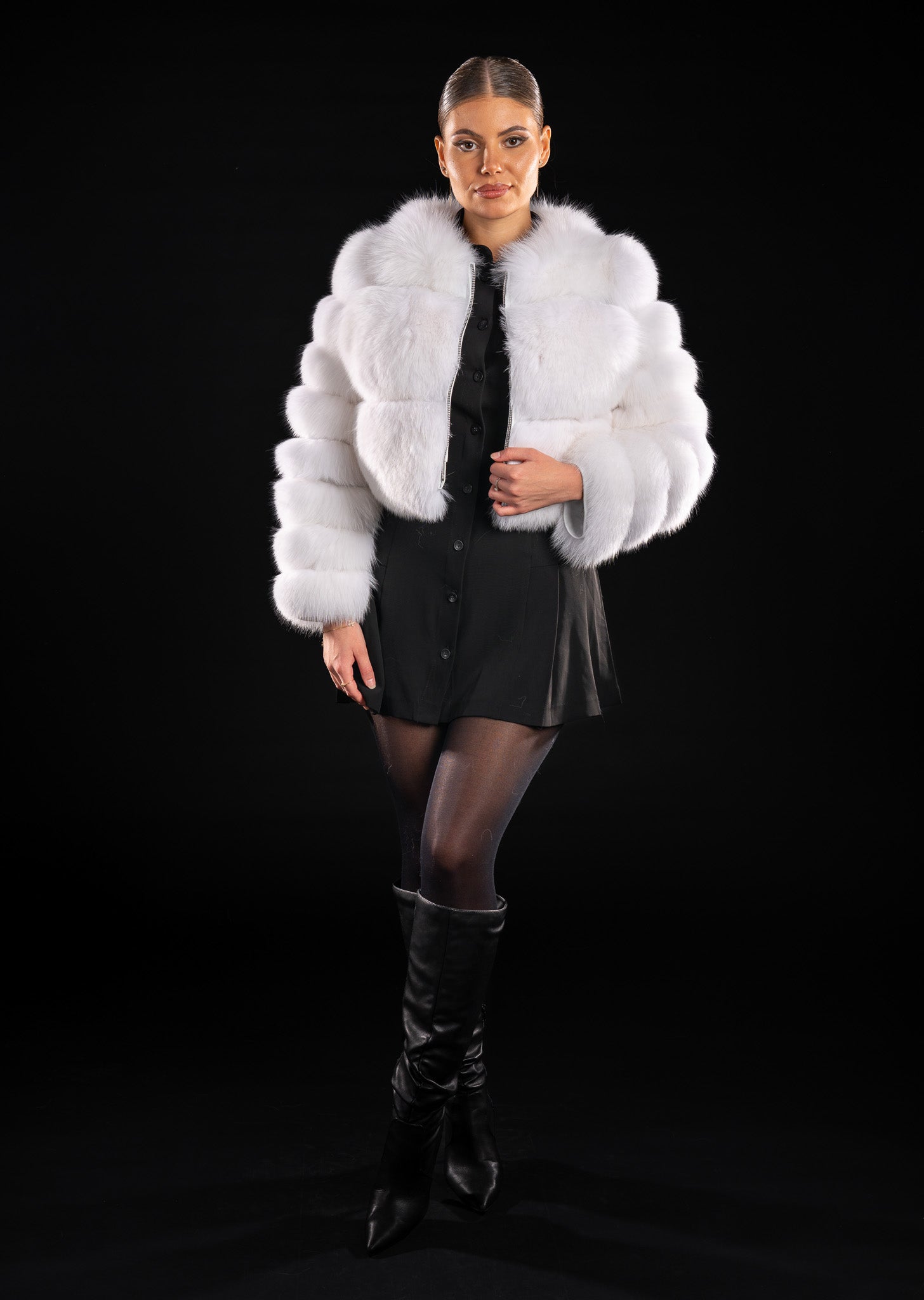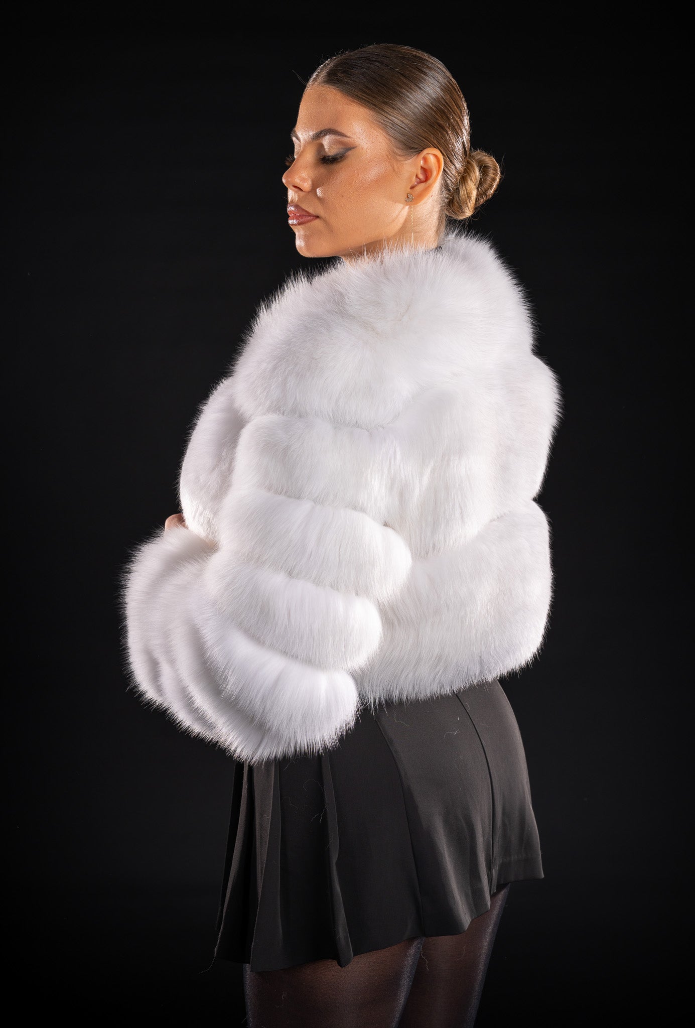 Haină spectaculoasă din vulpe polară albă, definită prin puritatea și rafinamentul nuanței sale imaculate.