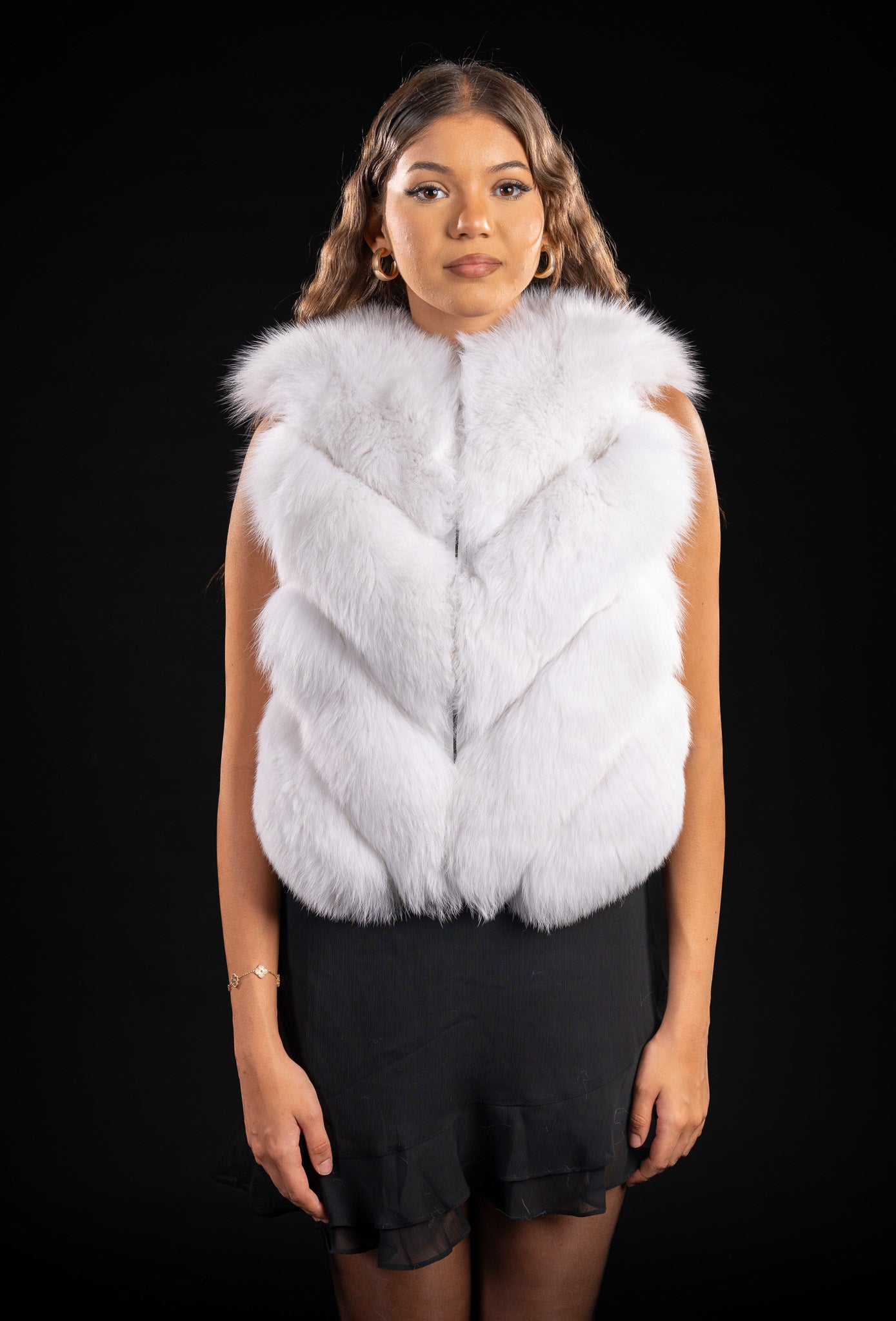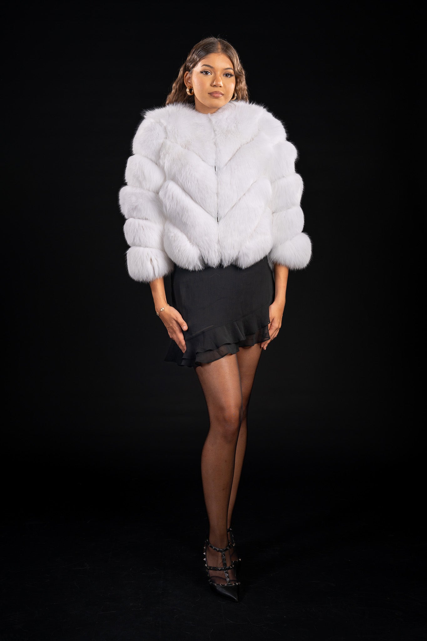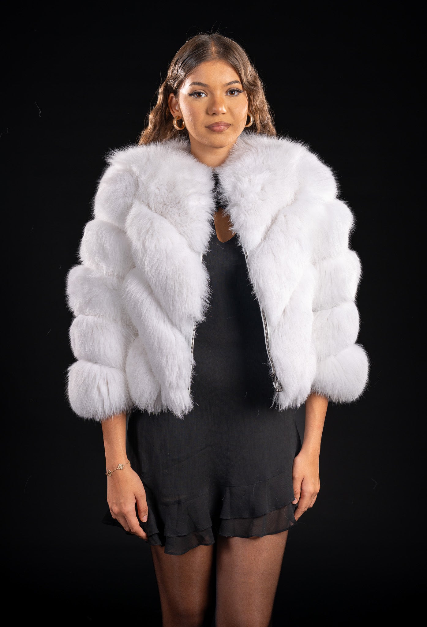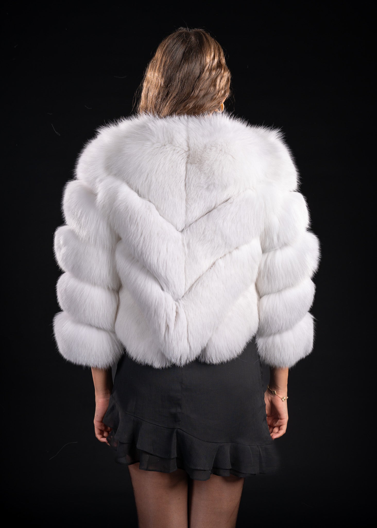 Descoperă farmecul irezistibil al luxului nordic cu această haină de blană naturală de Vulpe polară, o piesă care îmbină rafinamentul cu versatilitatea.