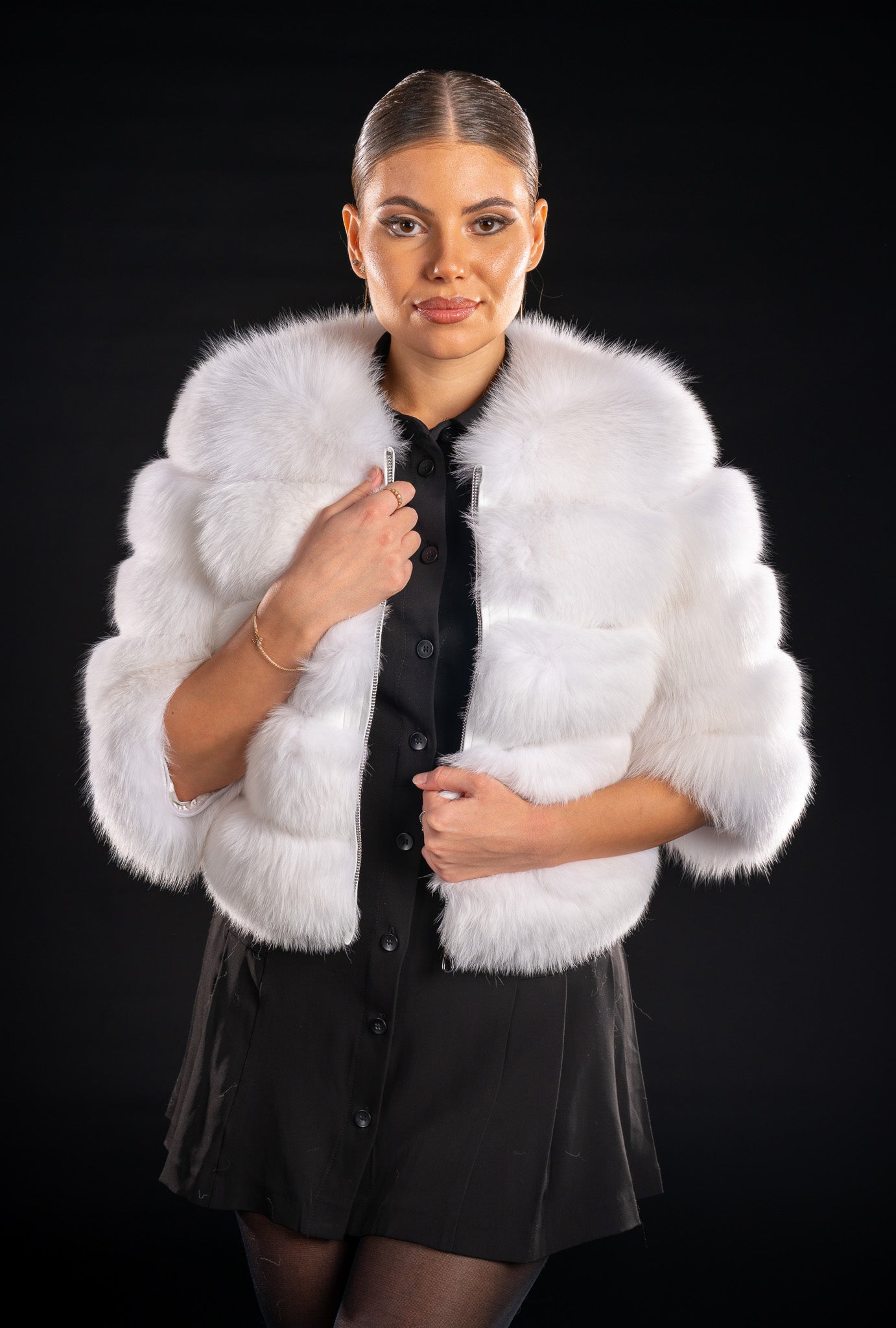 HAINA DIN BLANA NATURALA DE VULPE POLARA MANECI 3/4, POLAR 023