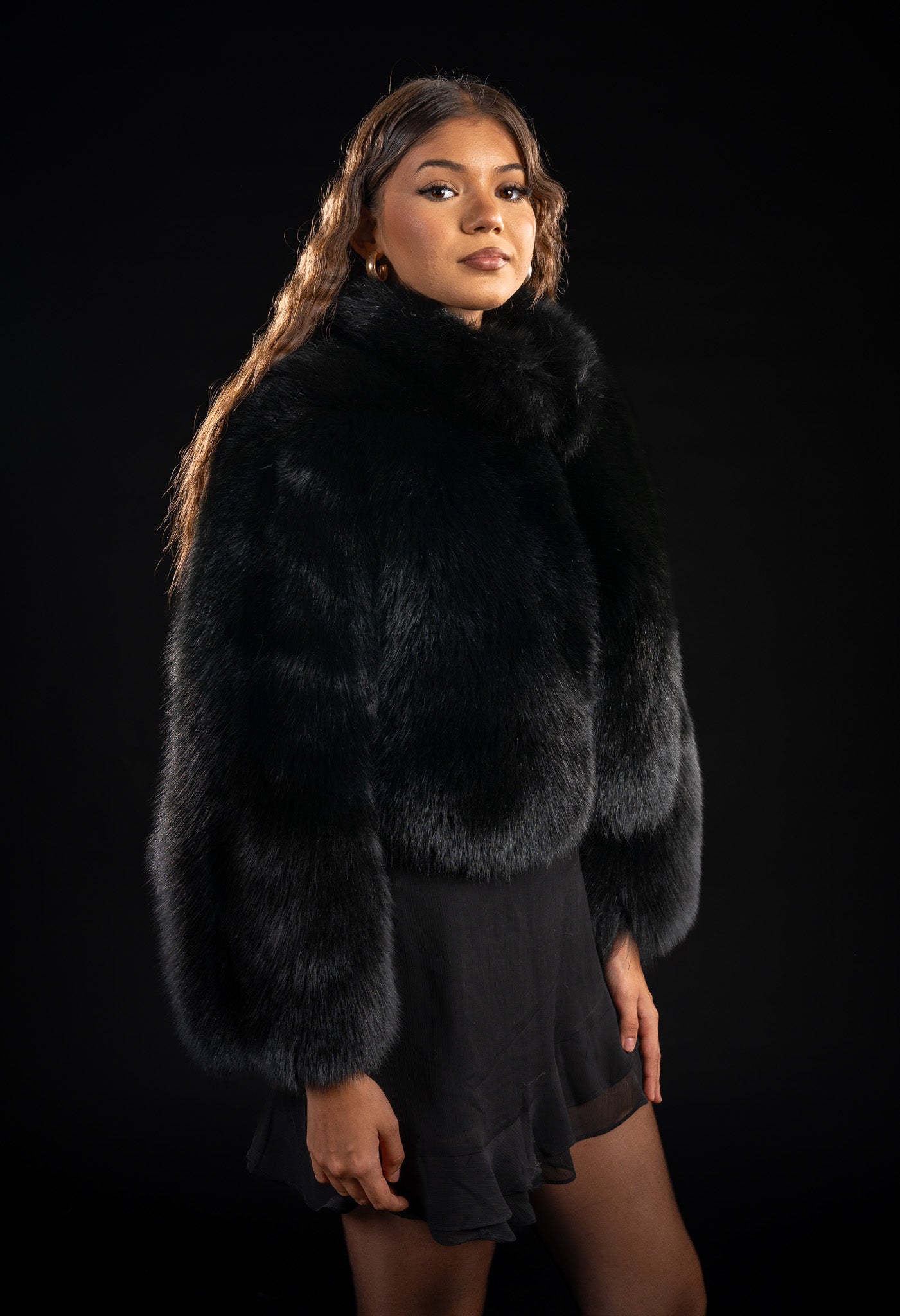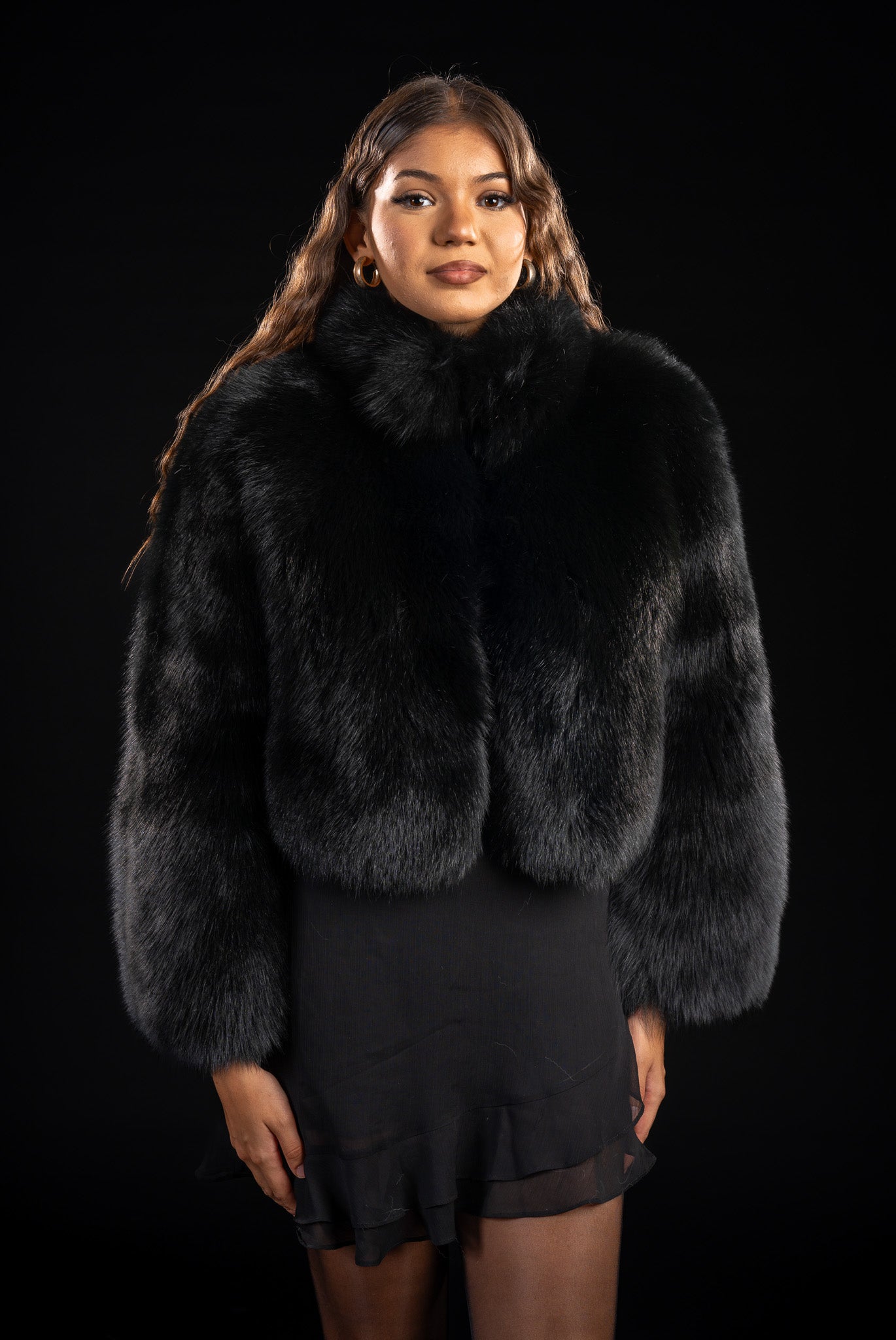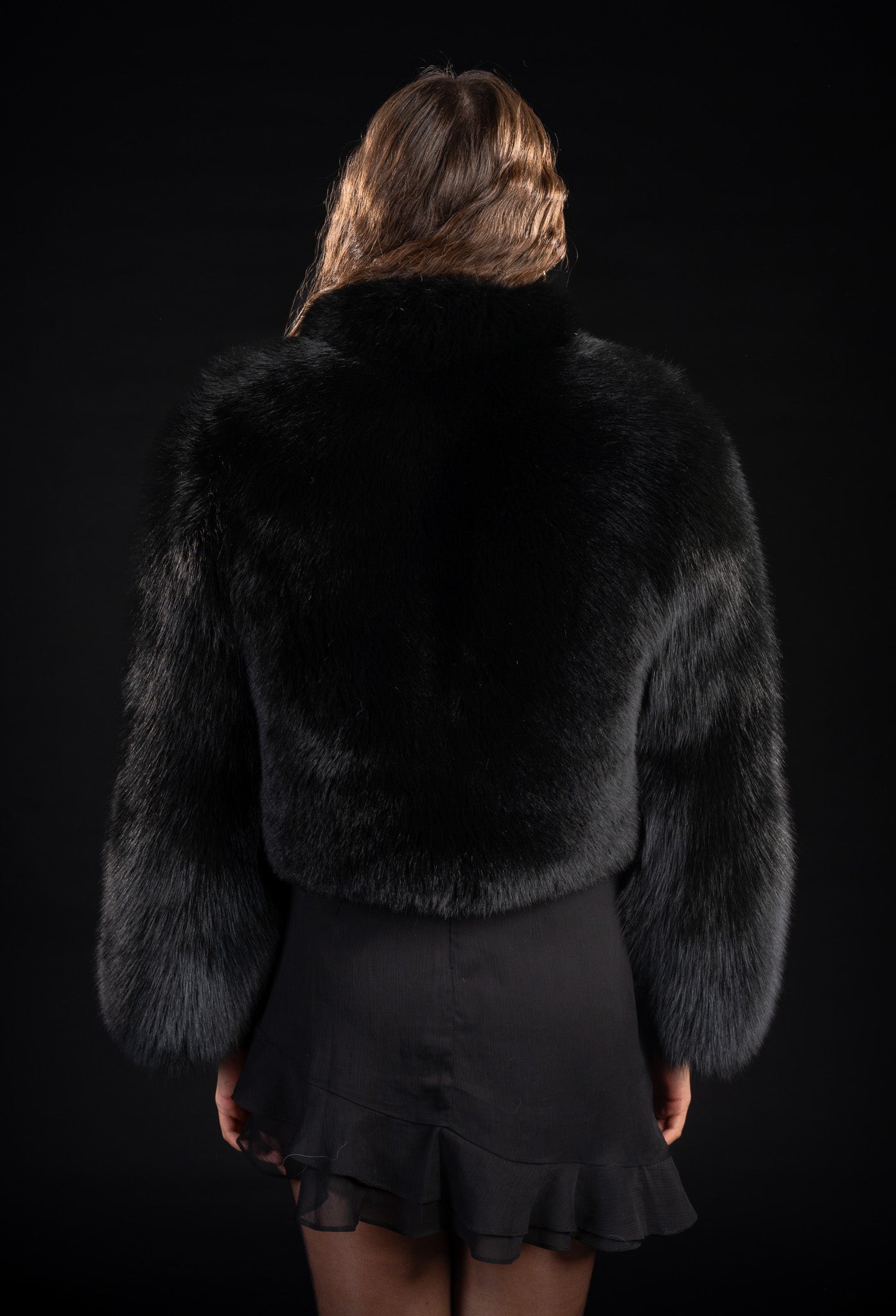 Această haină din blană naturală de vulpe argintie impresionează prin textura sa densă, fină și uniformă, realizată dintr-o singură bucată, care îi conferă un aspect spectaculos și deosebit. Croiala scurtă, de 50 cm, o face ideală pentru combinații elegante sau casual-chic.