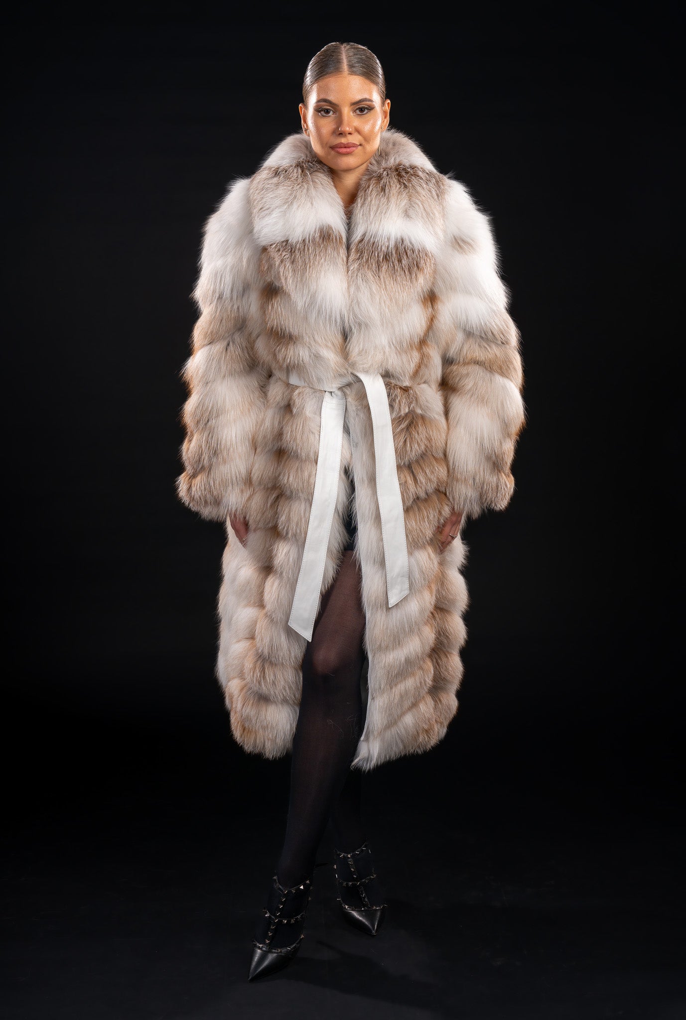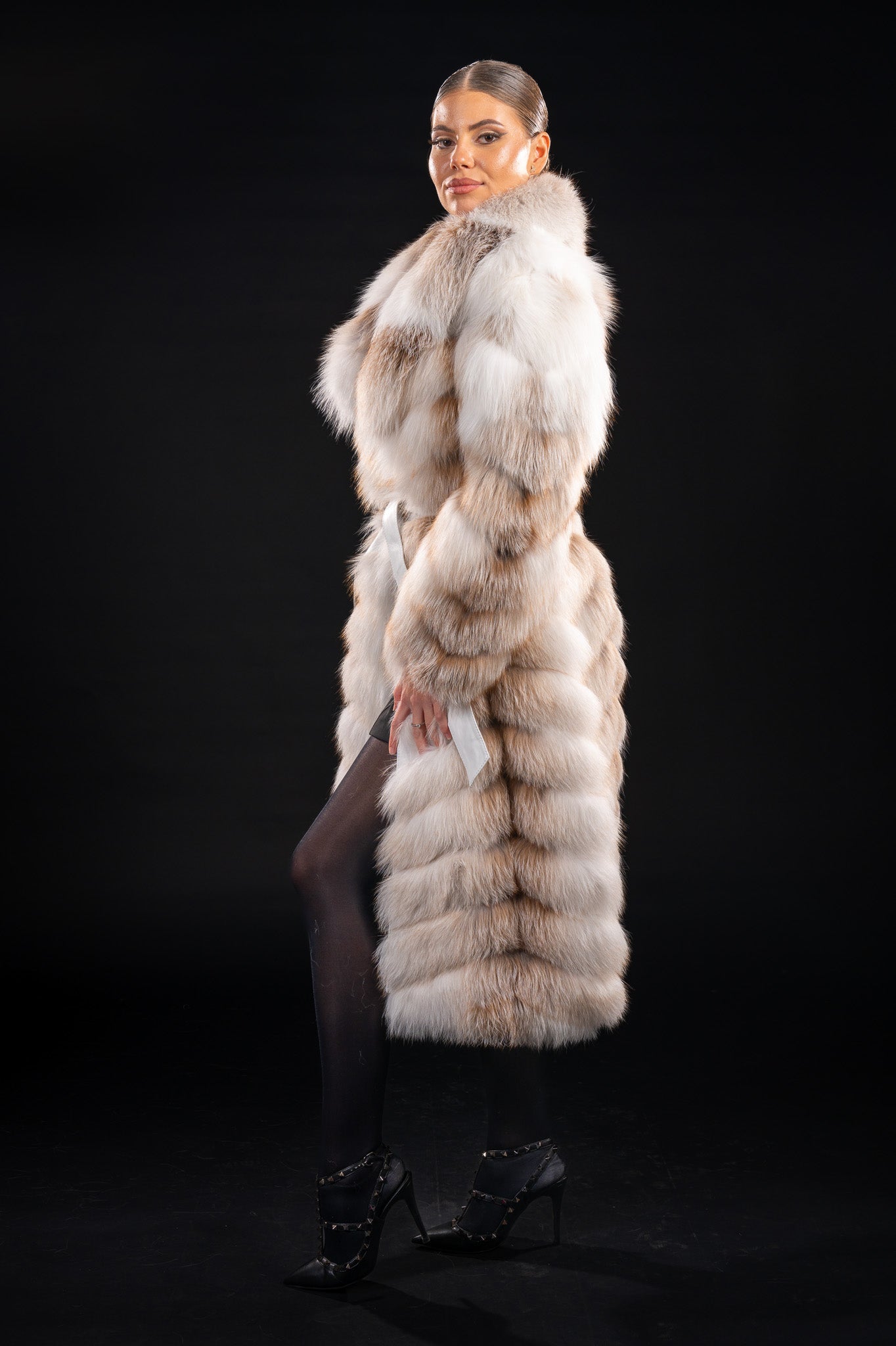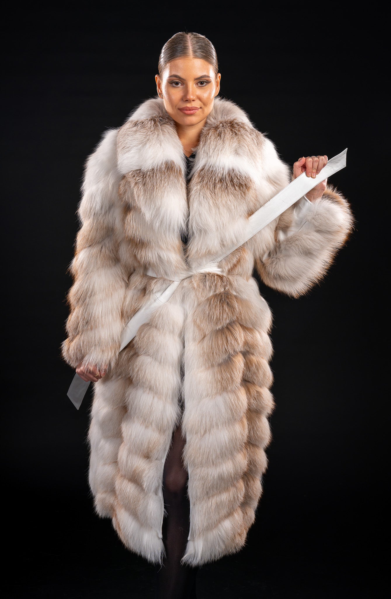 Această haină din vulpe Gold Iceland este o piesă atemporală, ce combină frumusețea naturală a blănii cu rafinamentul designului modern – o expresie a eleganței pure, creată pentru femeia care își dorește o apariție memorabilă, plină de stil și încredere.