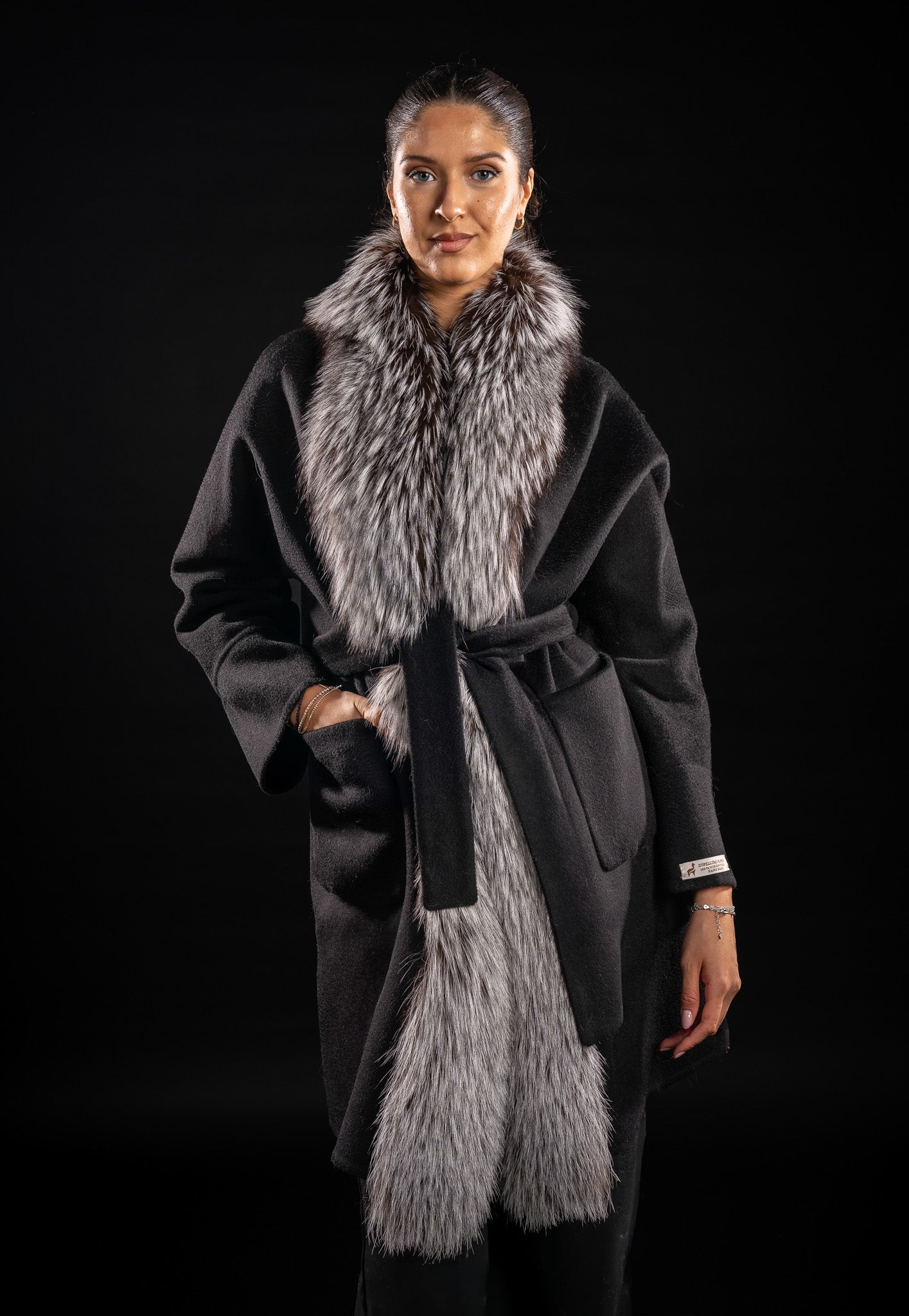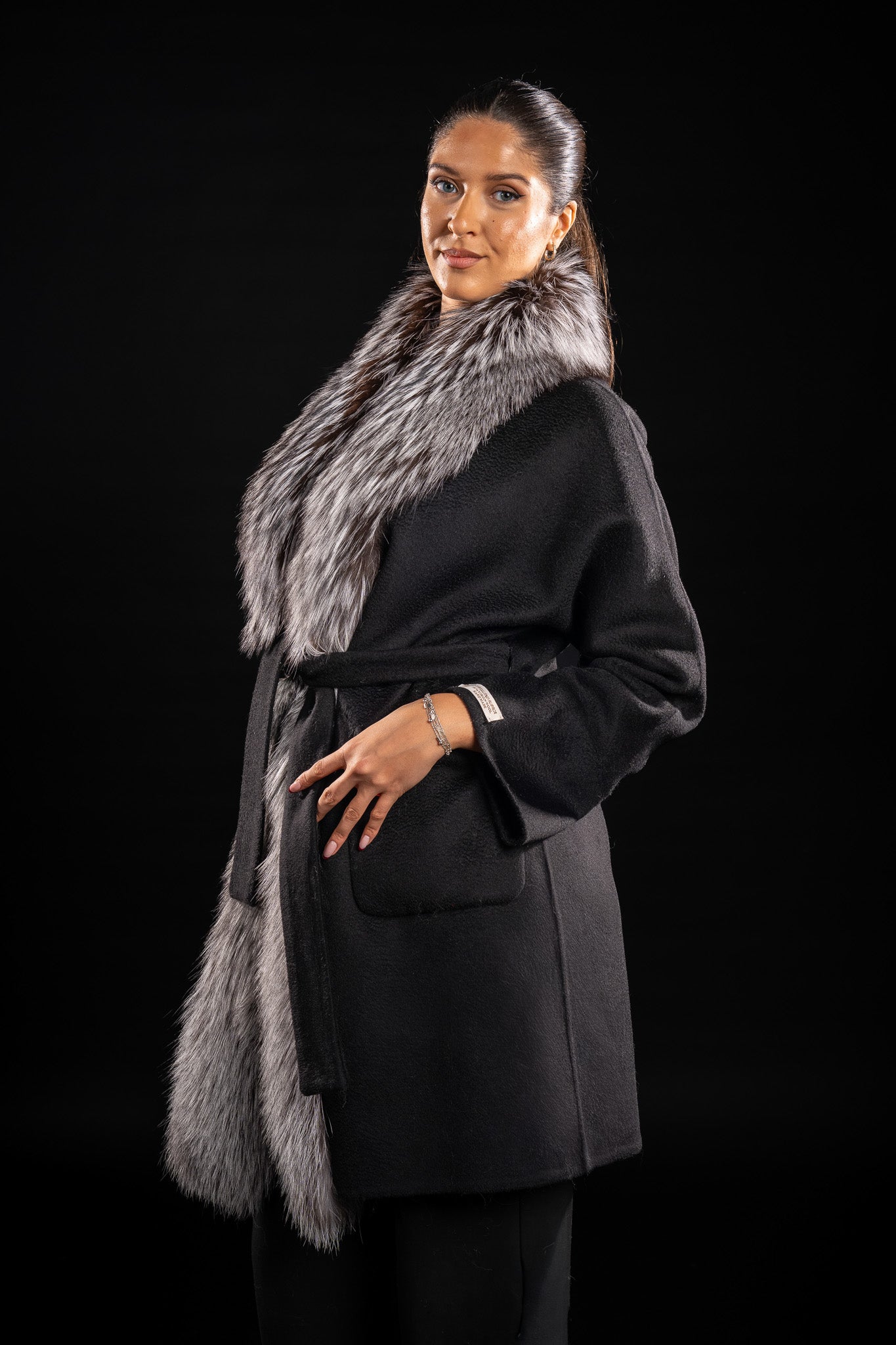 PALTON DIN LANA DE ALPACA CU GULER DIN BLANA NATURALA DE VULPE ARGINTIE, 502